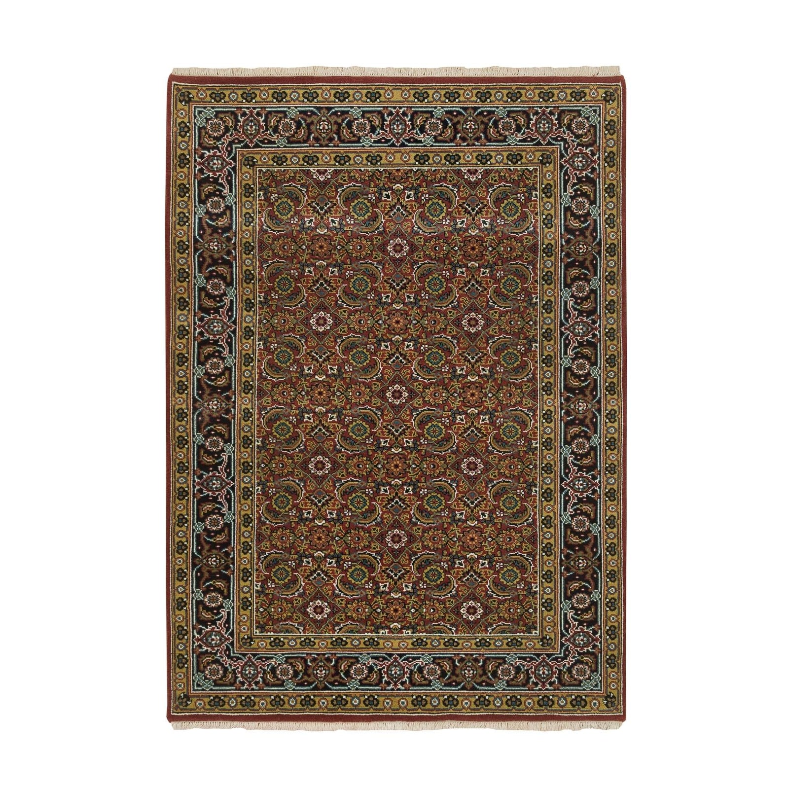 Rug 4'2"x6' Red Herrita Fish Design 175 KSPI Hand Knotted Wool and Silk