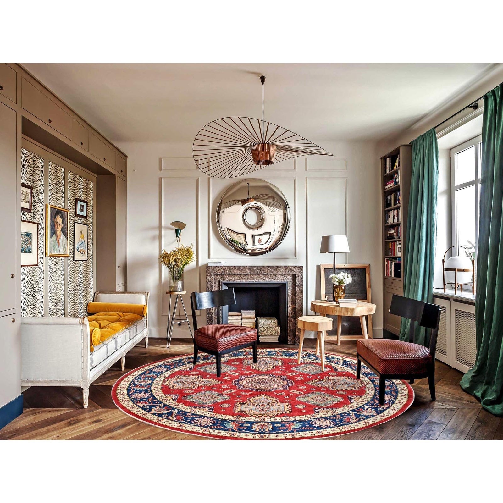 Experience the warmth and beauty of traditional Turkish craftsmanship with this stunning 9'x9' Rufous Red Special Kazak Wool Hand Knotted Round rug, expertly crafted from 100% wool for a rich, vibrant red hue that adds depth to any room. Made in Turkey, where centuries-old techniques meet modern sensibilities, this hand-knotted masterpiece boasts exceptional quality and durability. Its unique shape and bold color make it a statement piece that will elevate your space with timeless elegance.