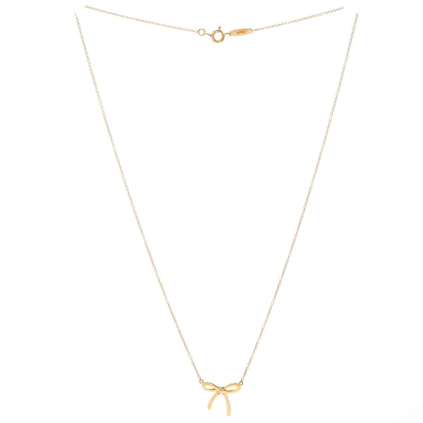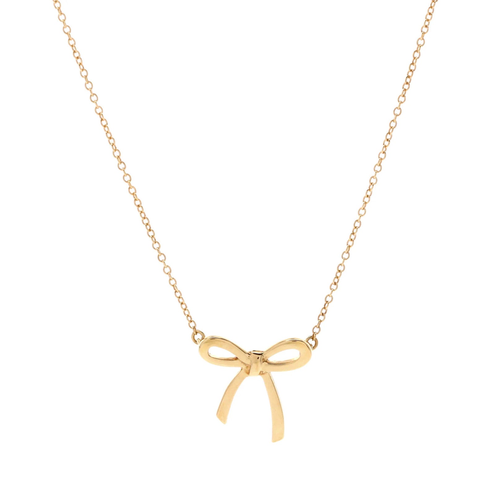 Tiffany & Co. Bow Pendant Necklace 18K Yellow Gold Mini