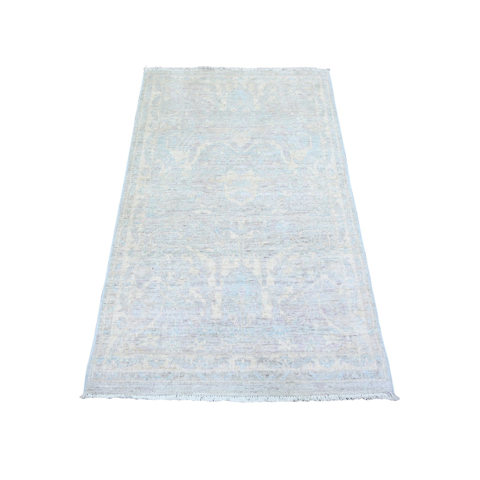 2'10"X5' Ash Gray, White Wash Peshawar Wool Hand Knotted, Oriental Rug