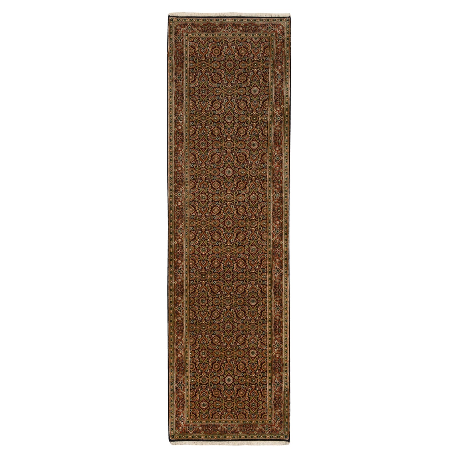 2'8"X9'9" Wool And Silk Herati Design 250 Kpsi Hand Knotted Runner Rug