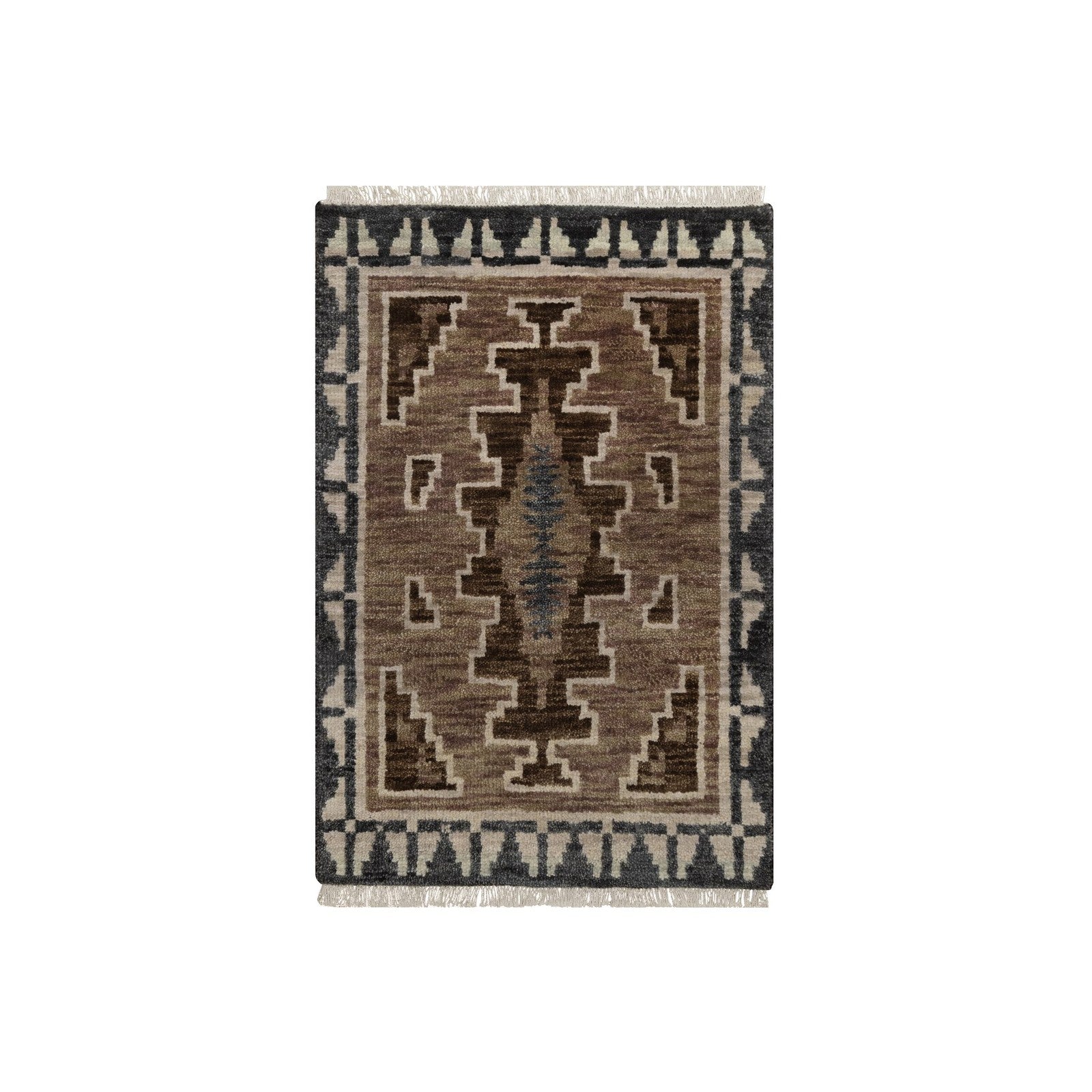 2'X3'1" Brown Hand Knotted Southwest American Indian Design Wool Mat Rug