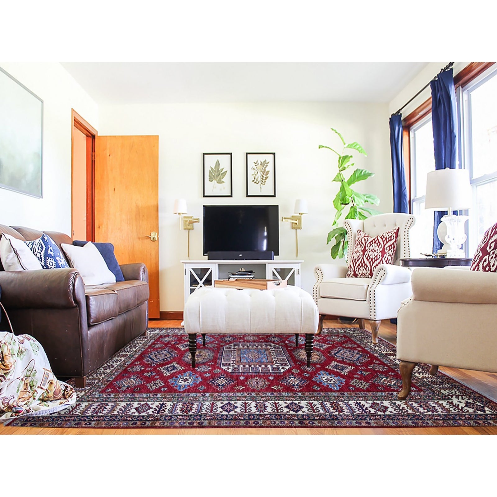 7'9"X9'9" Cereza Red Hand Knotted Afghan Super Kazak Wool Oriental Rug