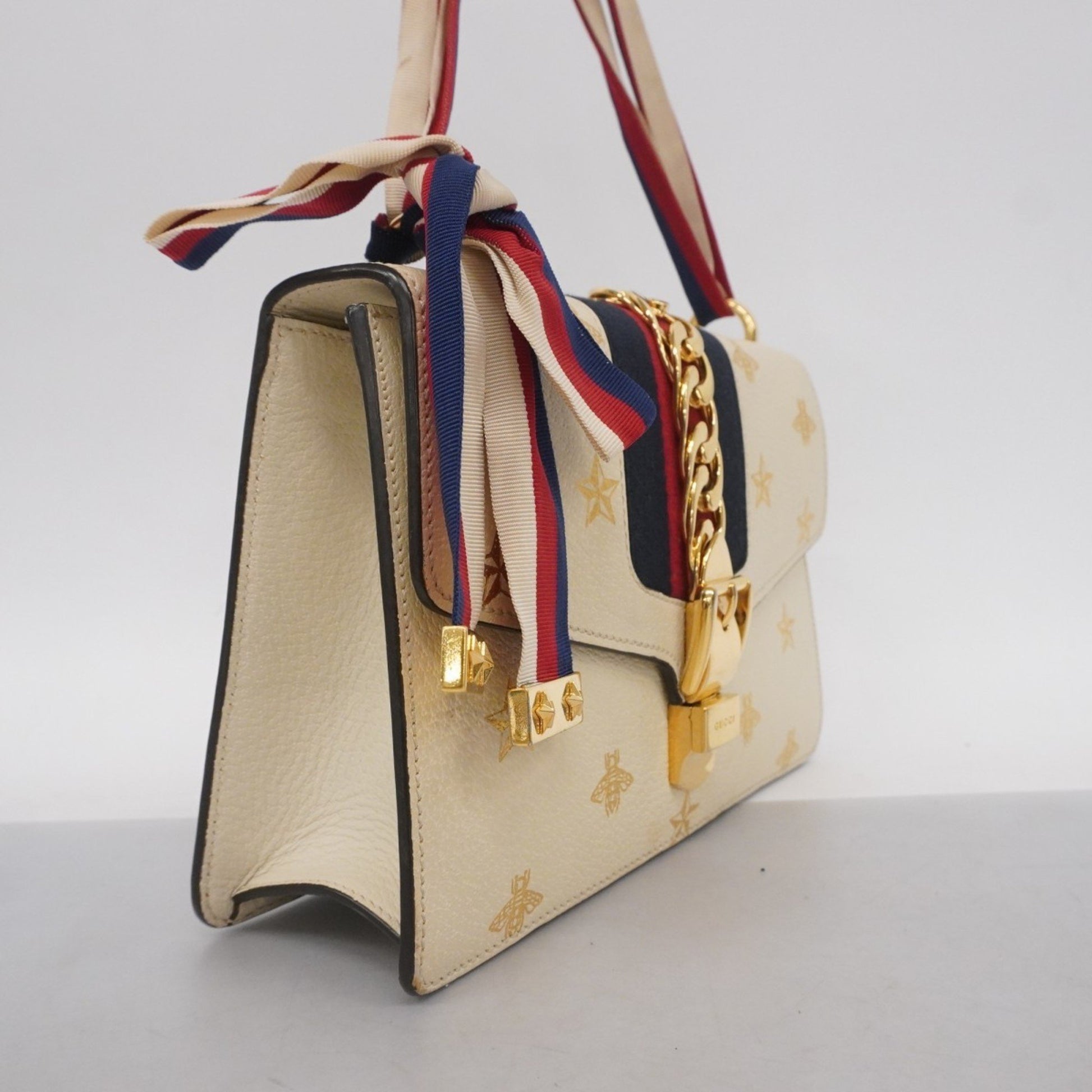 Gucci Sylvie Handbag 524405 Leather Ivory Gold