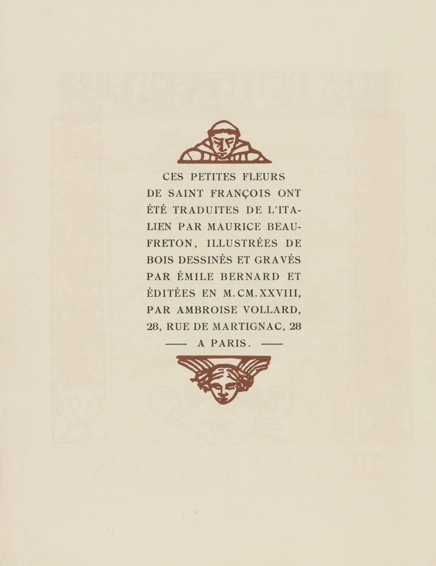 Published by Ambroise Vollard, diteur, Paris; printed by l'imprimerie Fquet et Baudier, under the direction of Marthe Fquet, Paris, August 27, 1928.