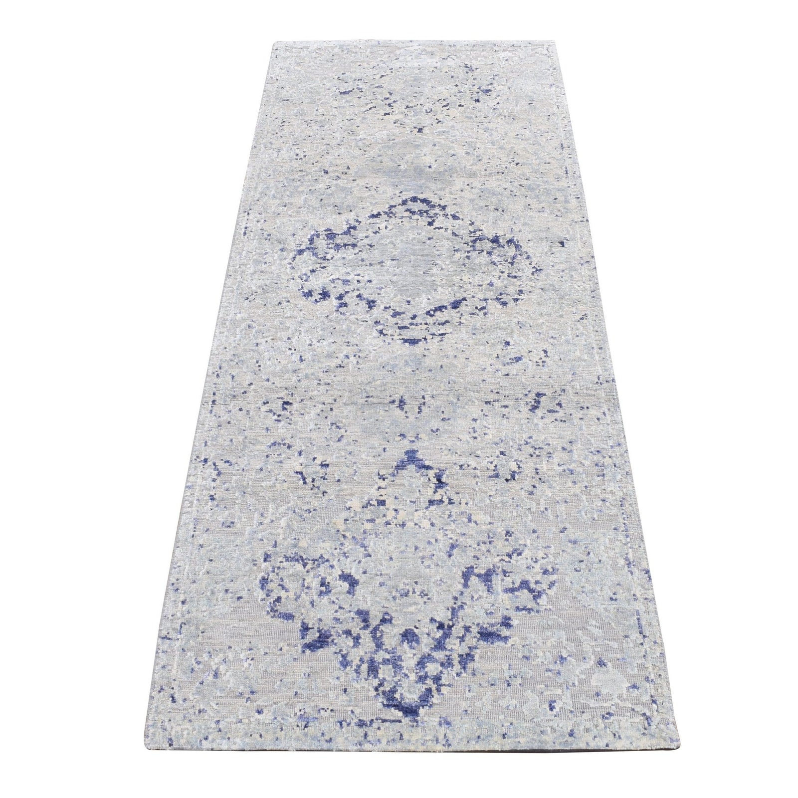 2'5"X6'1" Gray Cypress Trees Design Silk/Wool Hand Knotted Runner Rug