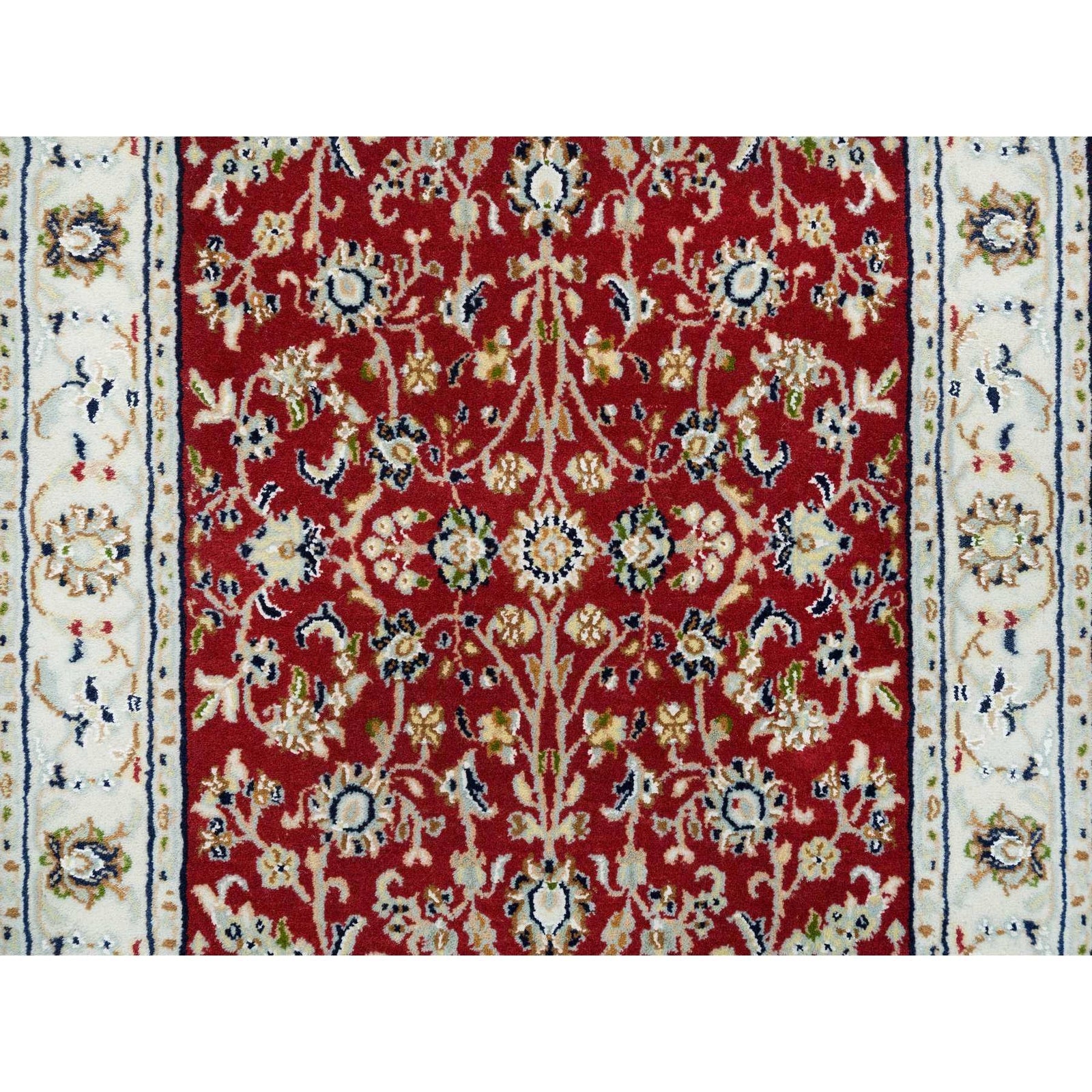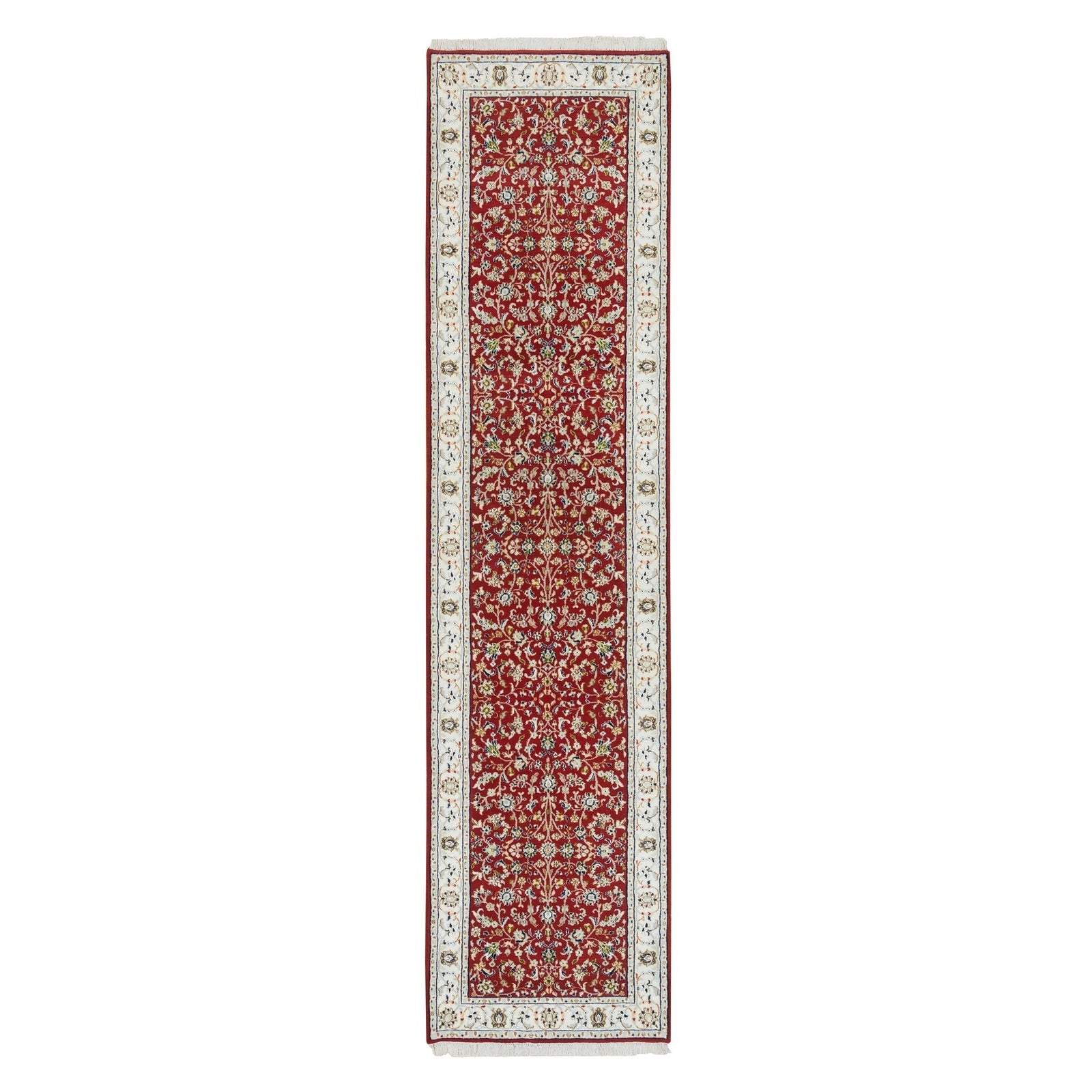 2'7"X10'5" Red Hand Knotted Nain Design 250 Kpsi Soft Wool Runner Rug