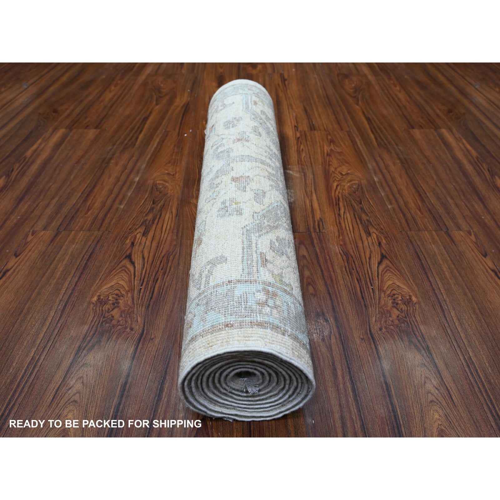 2'8"X9'6" White Stone Wash Peshawar Hand Knotted Organic Wool Runner Rug