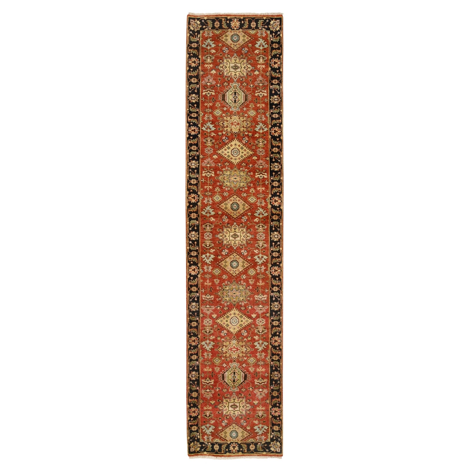 2'9"X12' Red Hand Knotted Karjihooz Design Pure Wool Runner Rug
