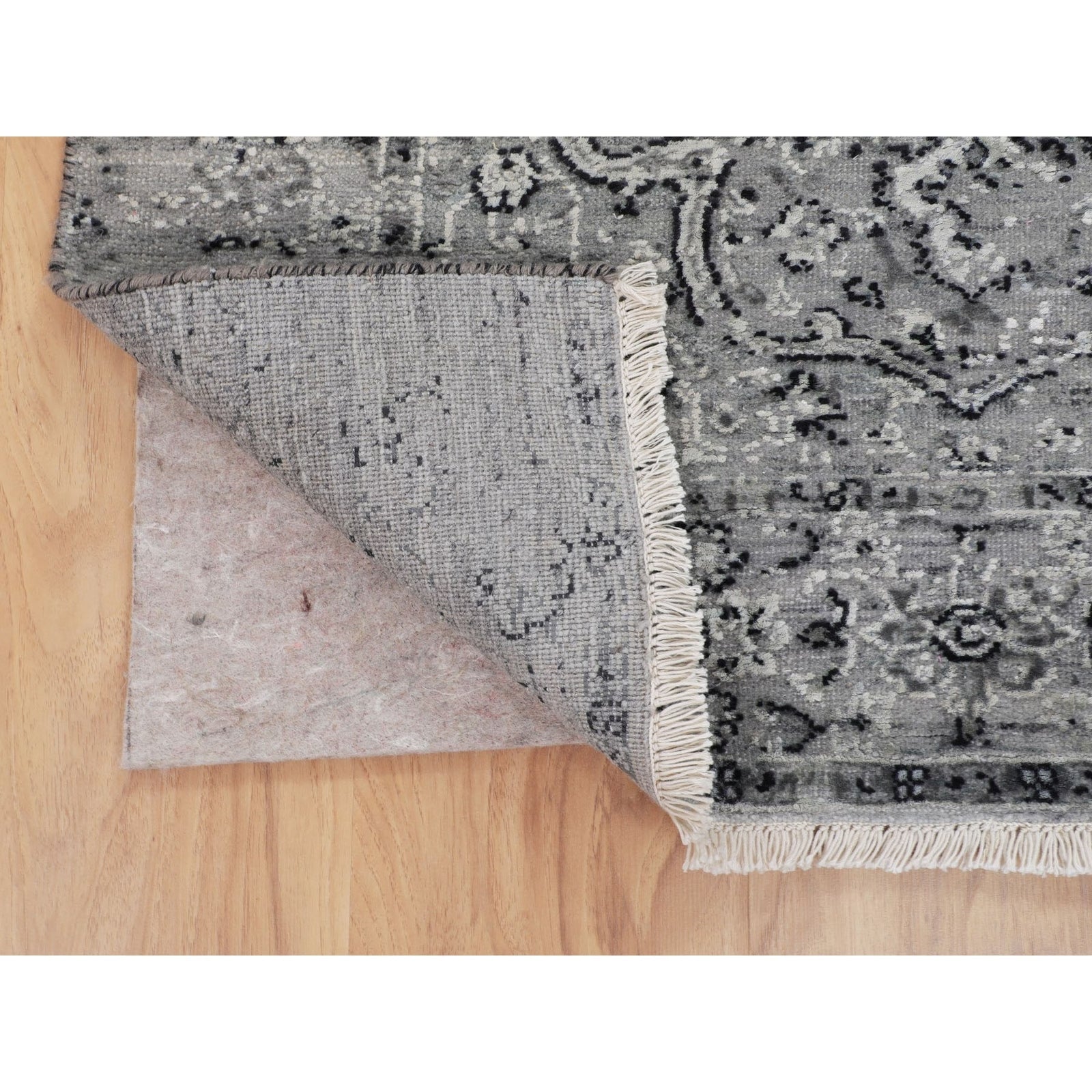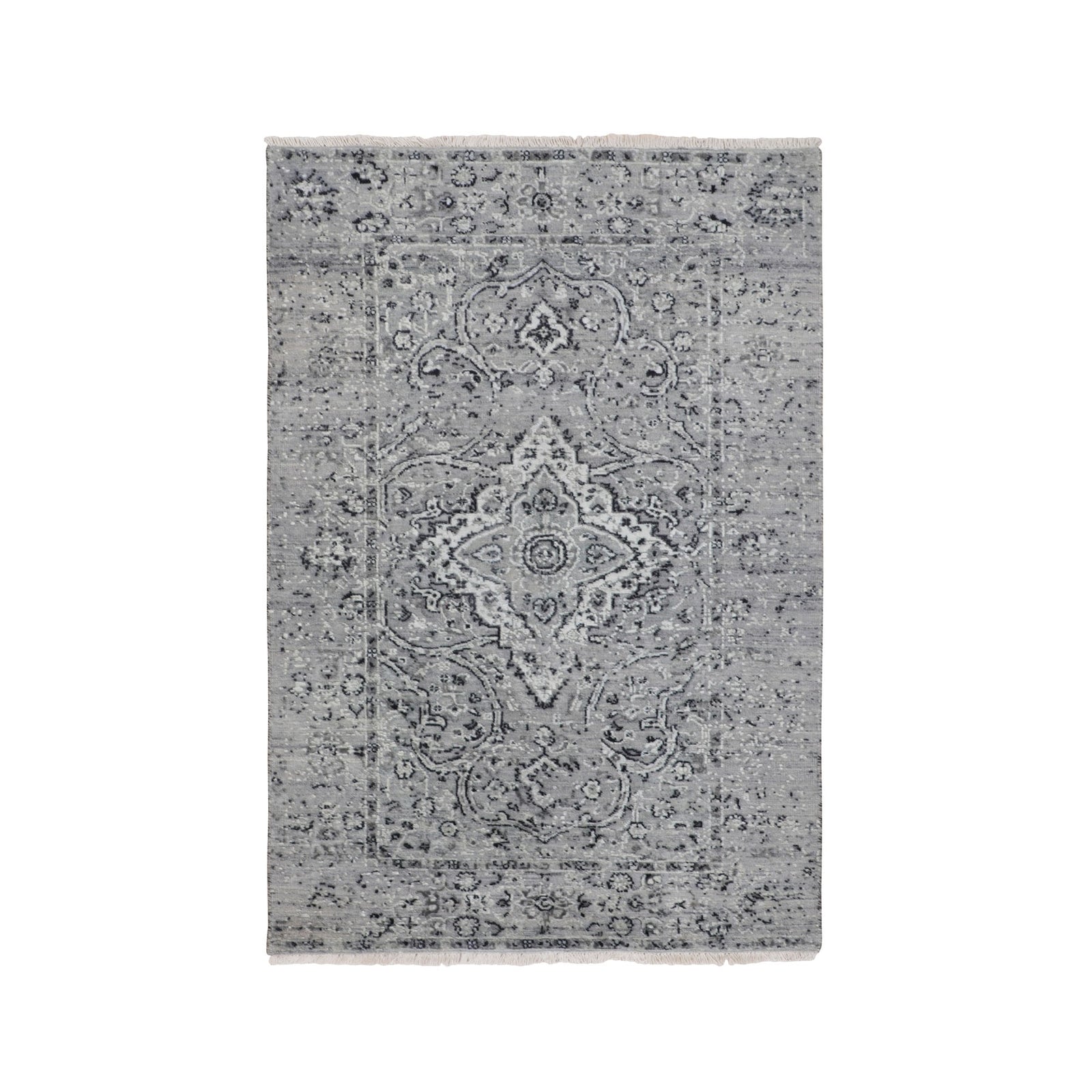 3'1"X5'1" Gray Farsian Silk With Textured Wool Hand Knotted Oriental Rug