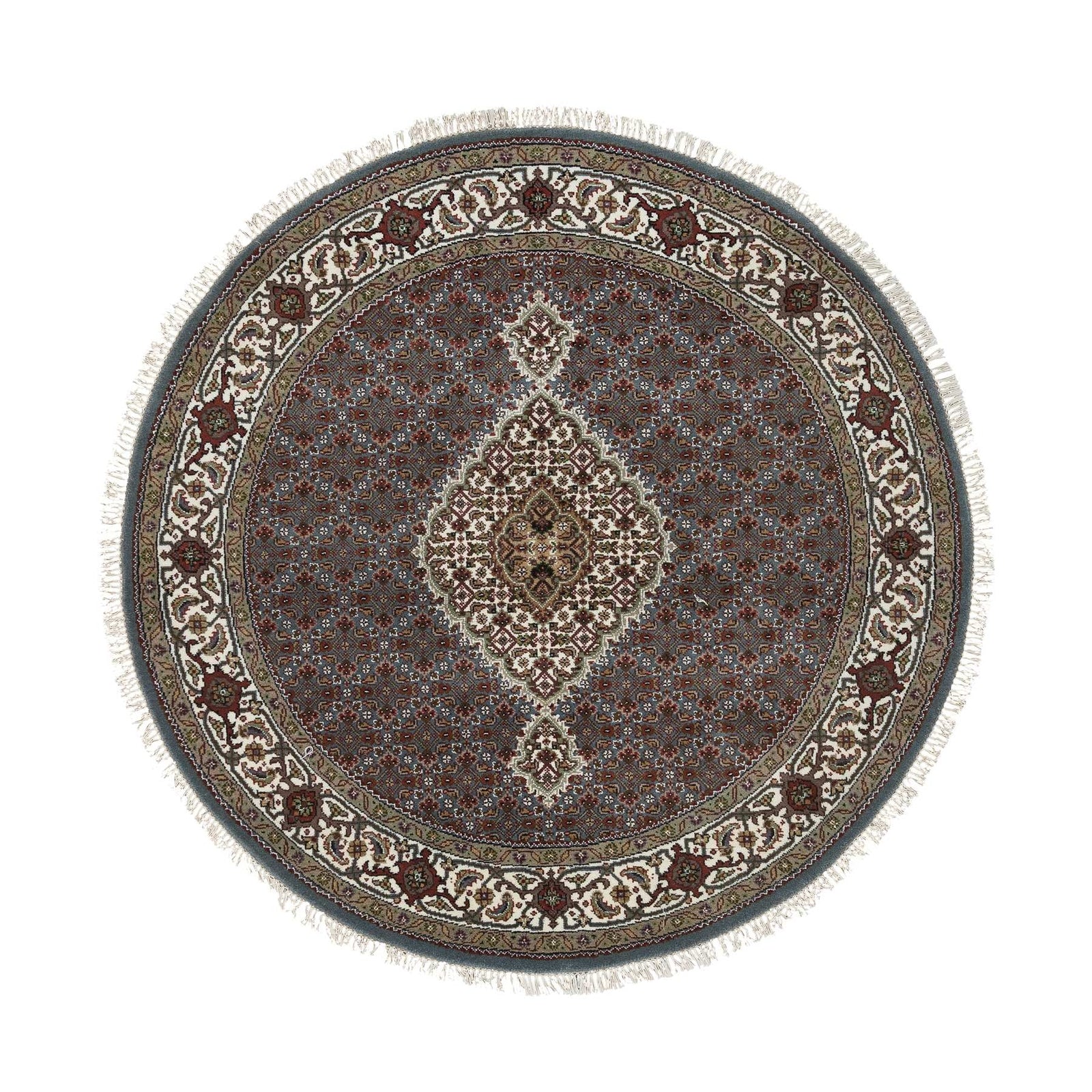 5'X5' Gray Wool And Silk Hand Knotted Tebraz Mahi Round Oriental Rug
