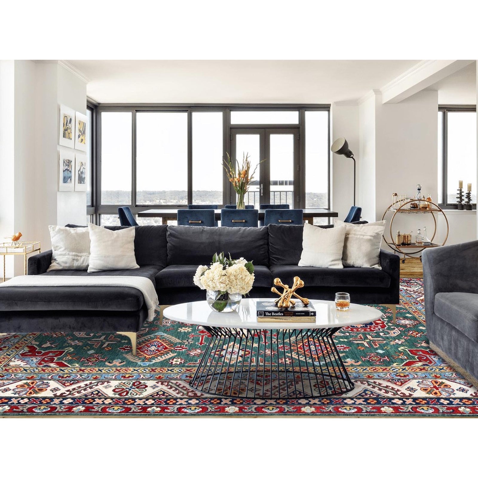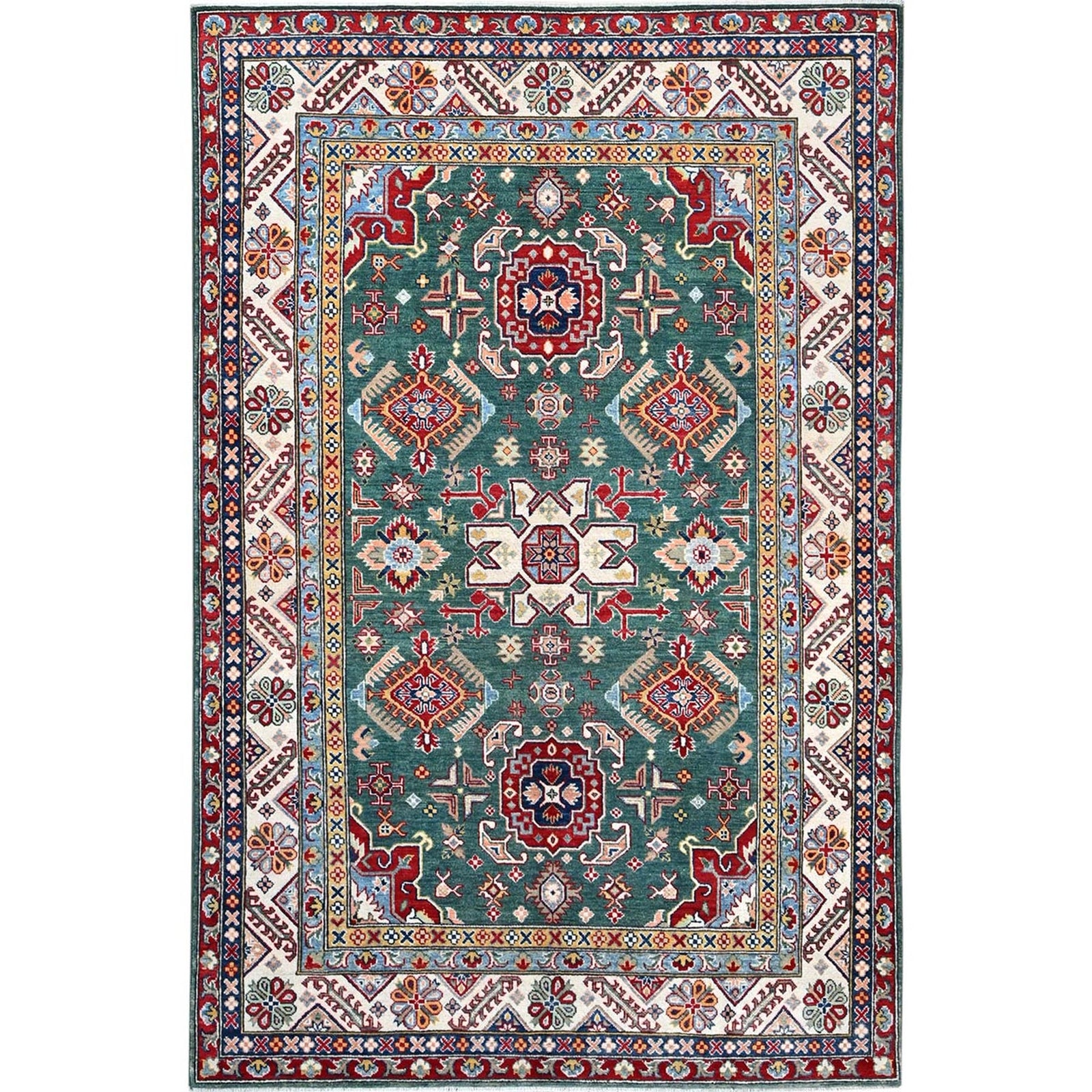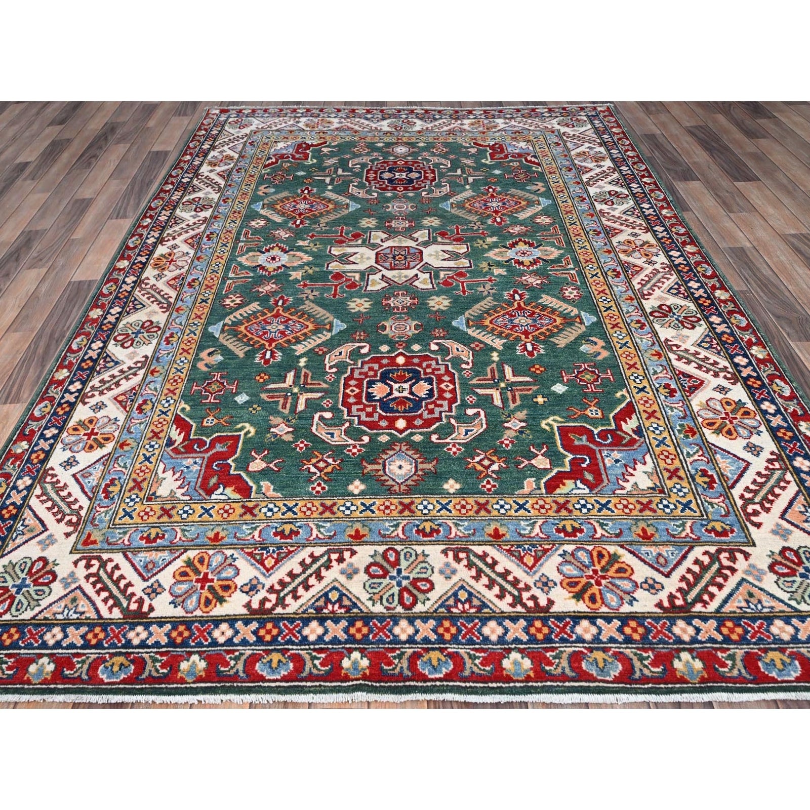 6'1"X9'2" Green Kazak Motifs Hand Knotted Denser Weave Wool Oriental Rug