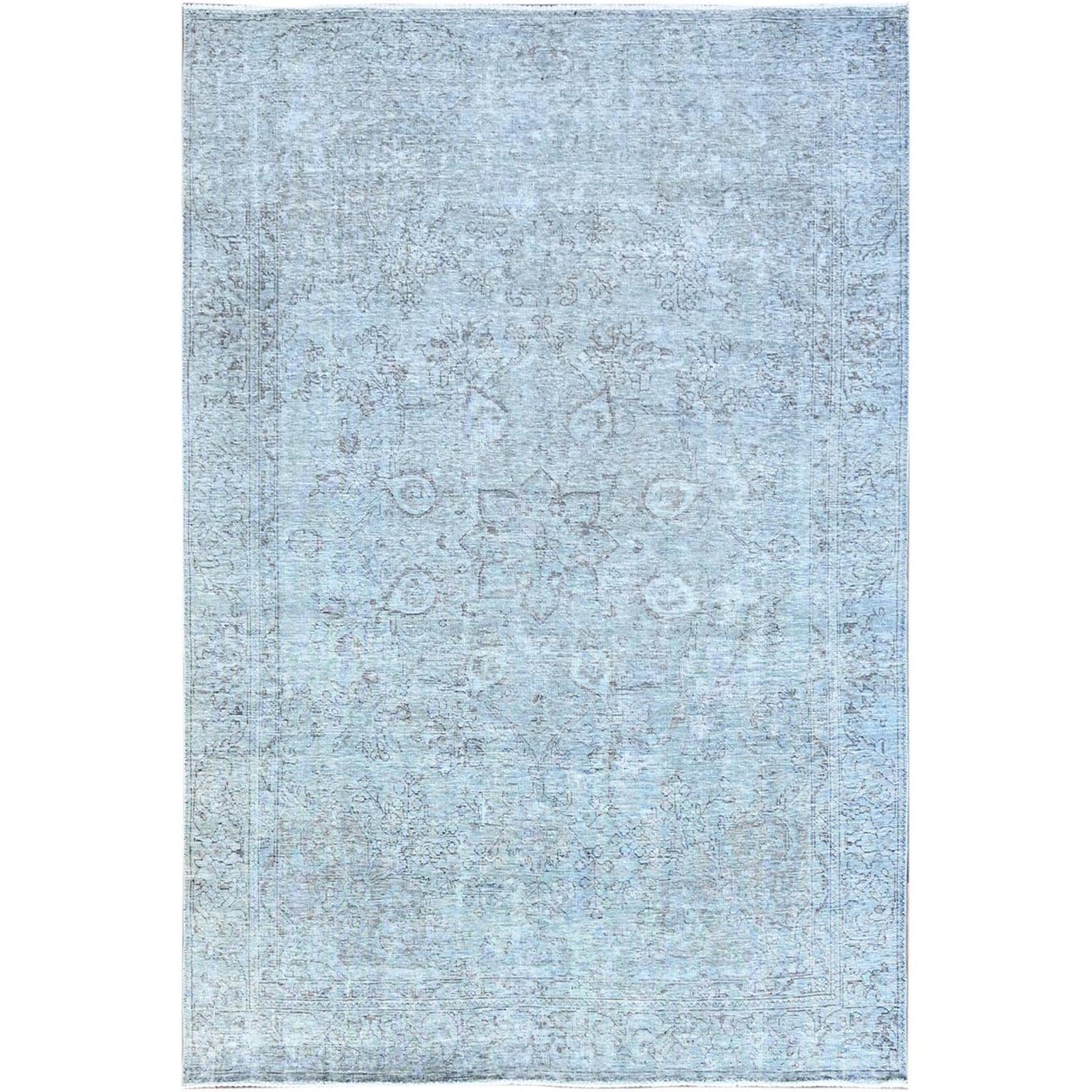 6'X8'9" Blue 100% Wool Clean Cropped Thin Hand Knotted Vintage Tebraz Rug