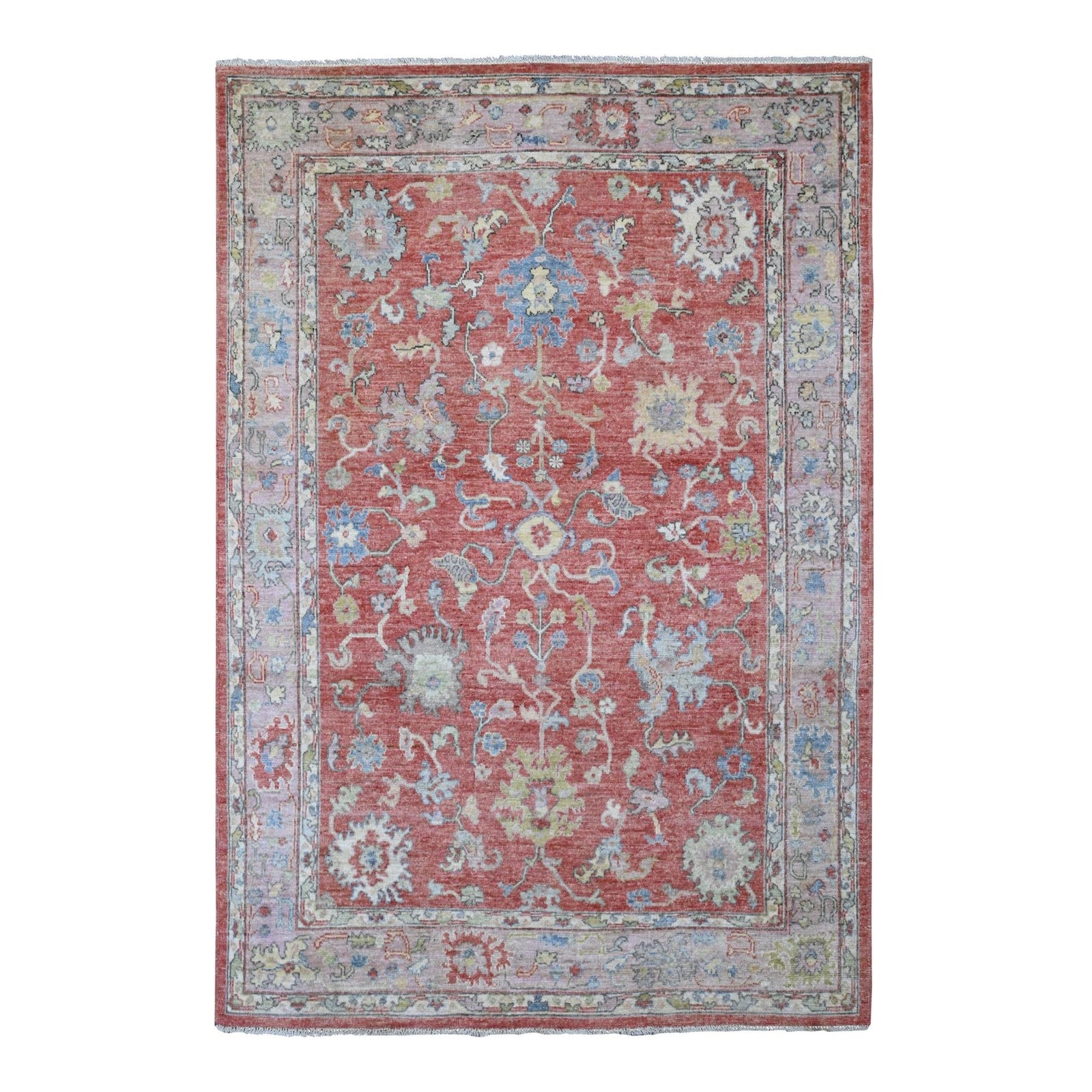 6'X8'9" Crimson Red Afghan Angora Oushak Hand Knotted Wool Oriental Rug