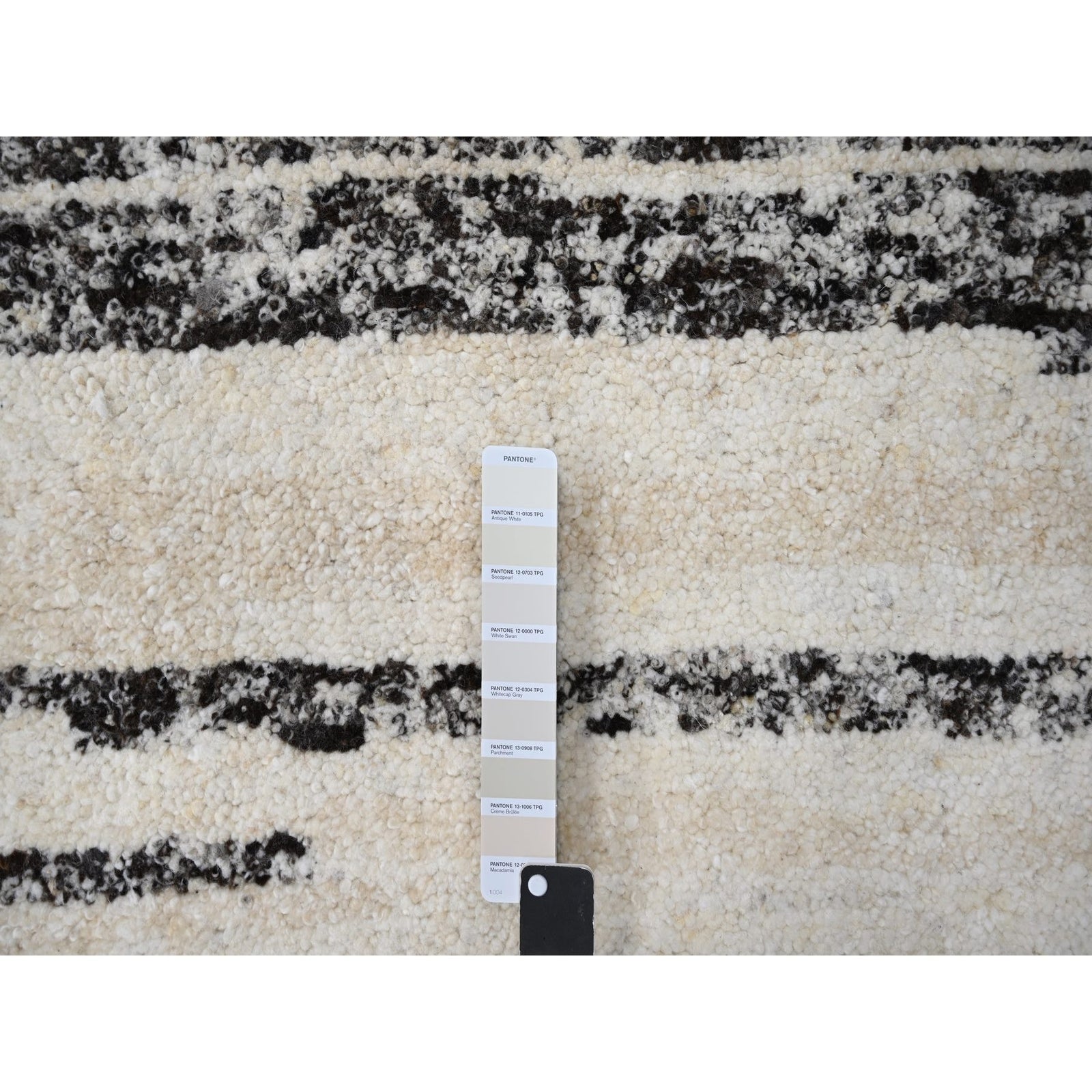 8'X8' Dark Brown And Ivory Striae Design Wool Hand Knotted Round Rug
