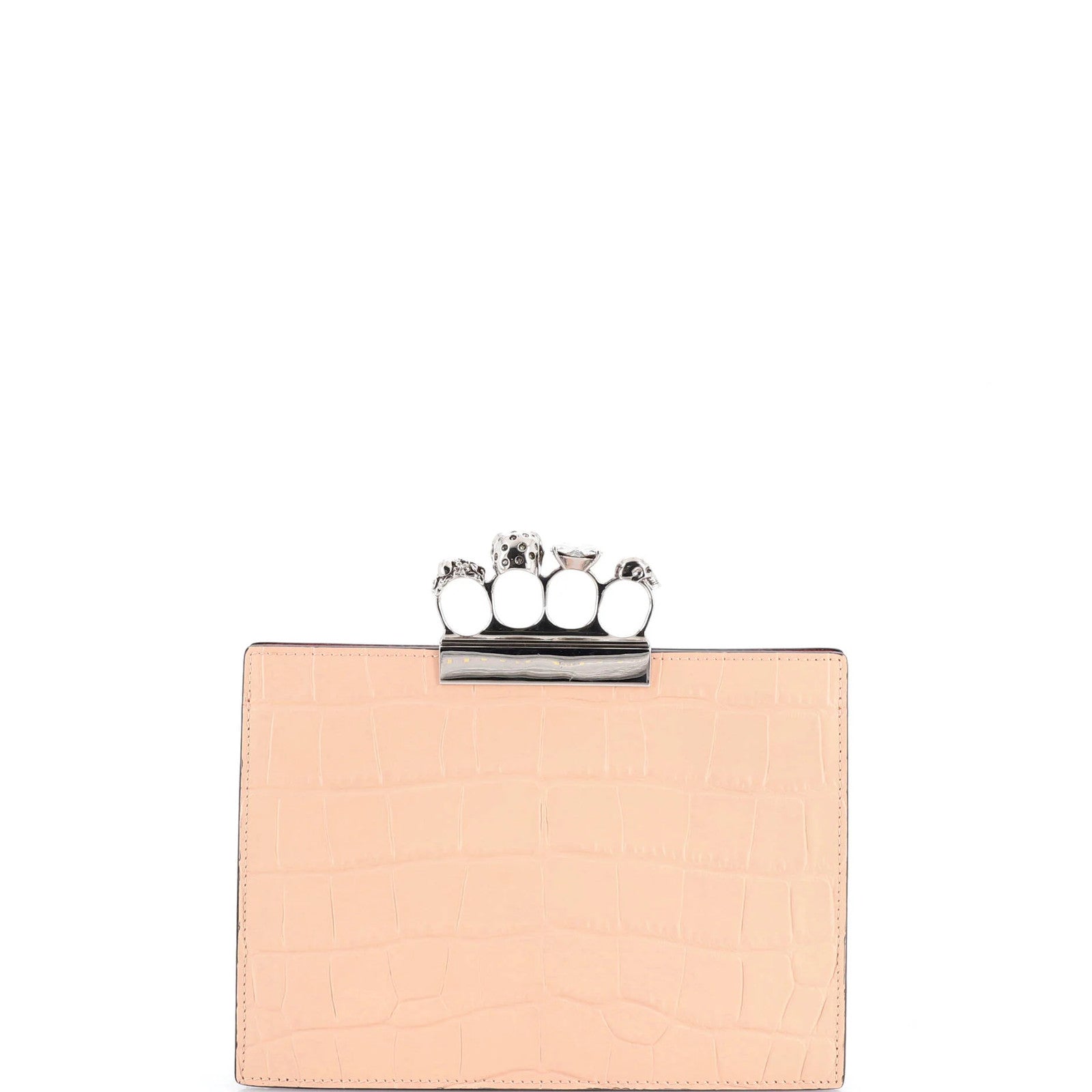 Alexander Mcqueen Flat Knuckle Clutch Crocodile Embossed Leather Medium