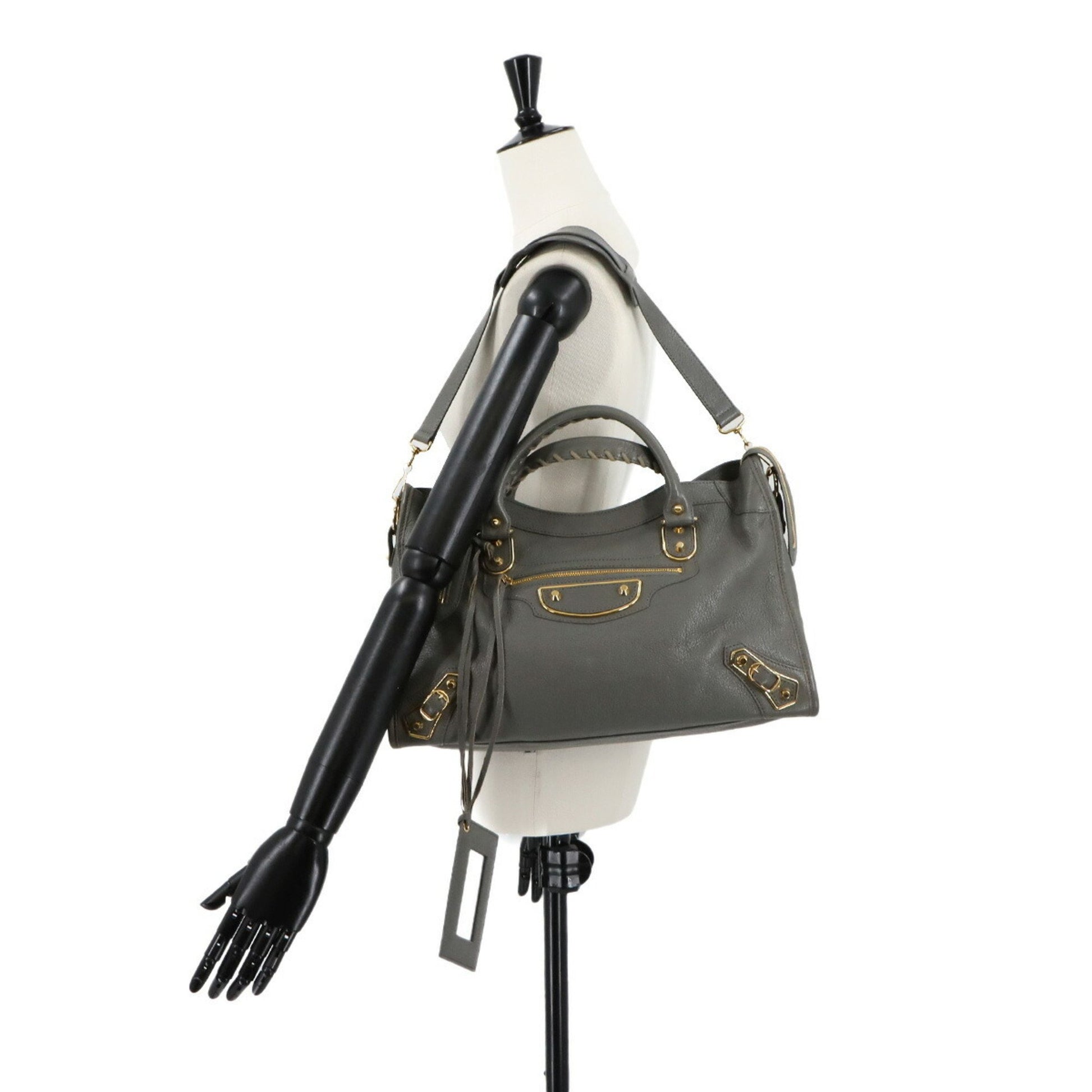 Balenciaga Classic Metallic Edge City 2-Way Hand/Shoulder Bag In Grey Leather