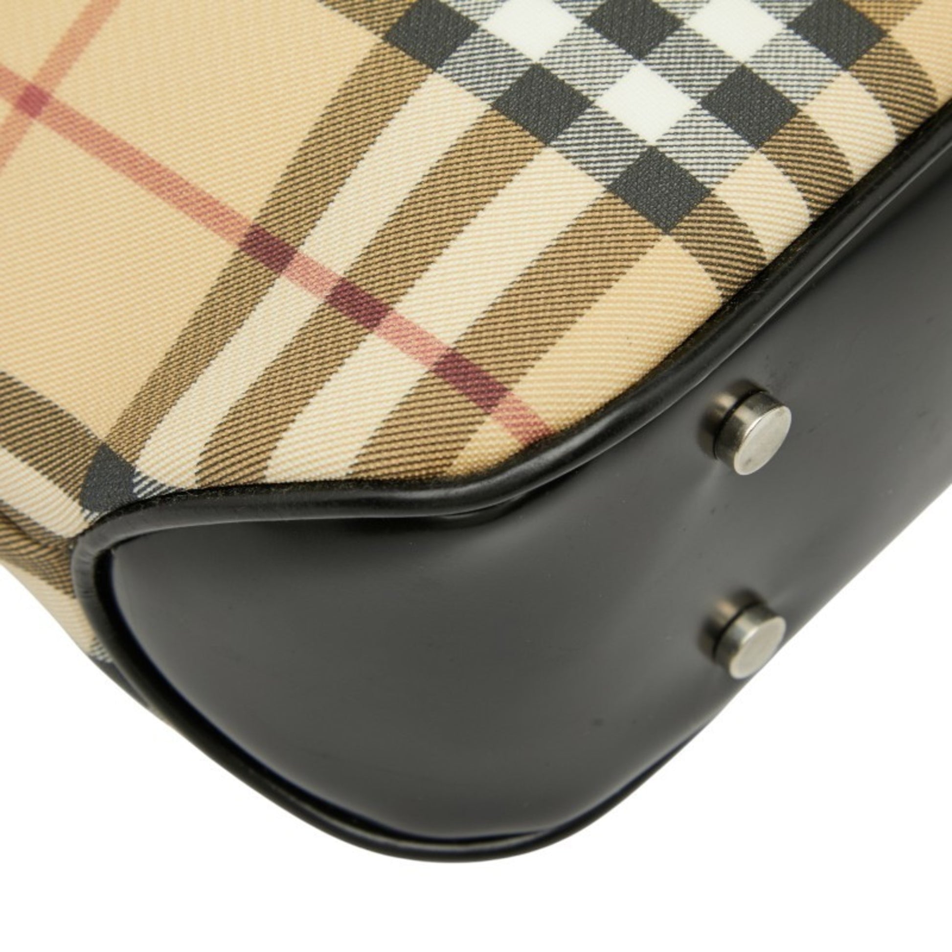 Burberry Nova Check Handbag Tote Bag Beige Black Leather