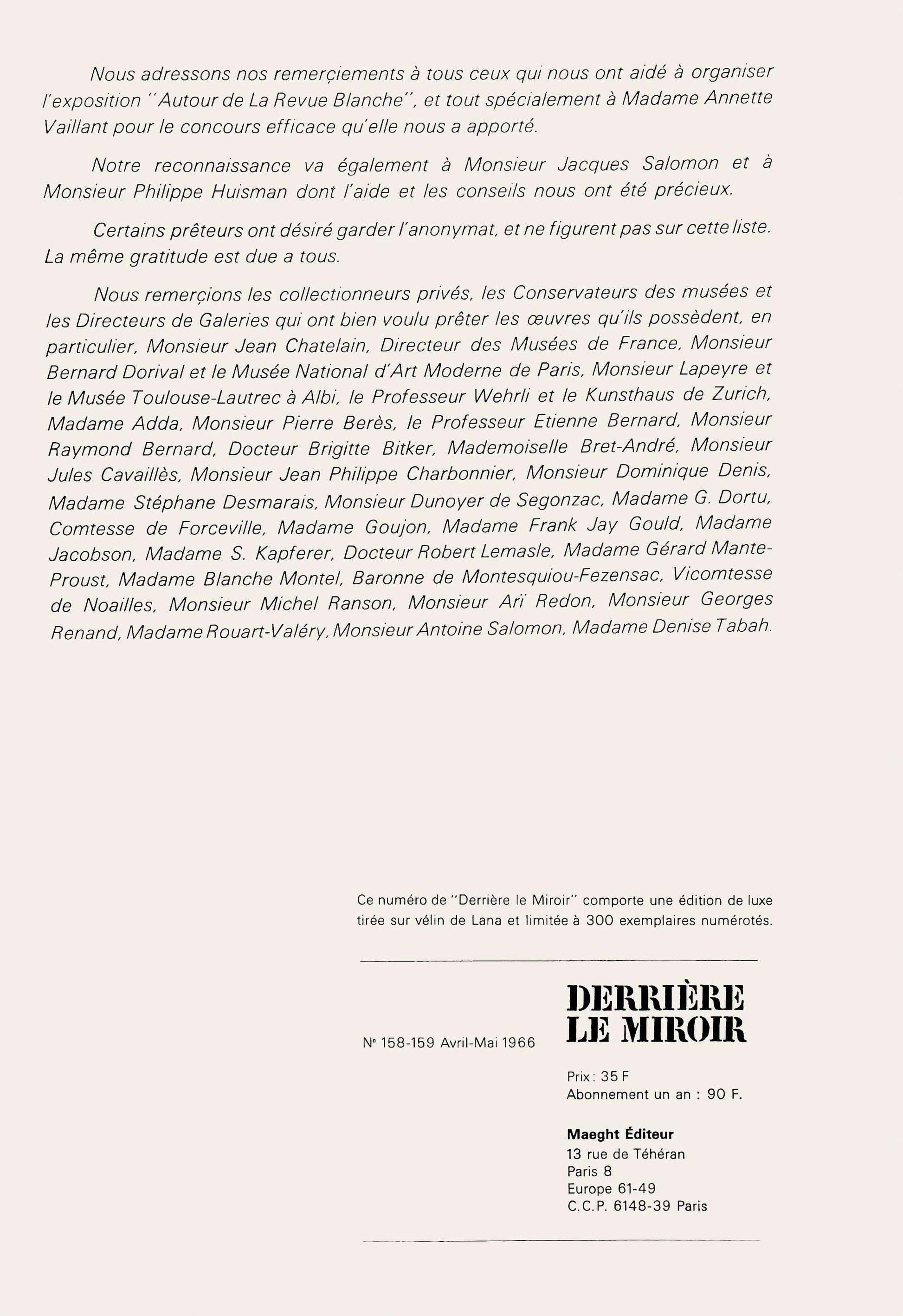 It was published after number 253 in 1982 and became a tribute to Aim and Margurite Maeght and 35 years of friendship with artists and poets. The era of Derrire le Miroir was closed with that final publication.