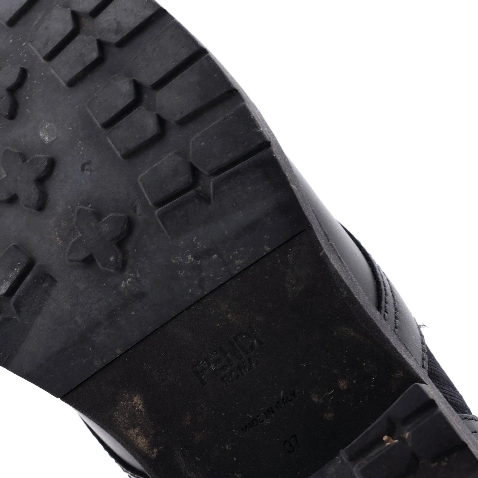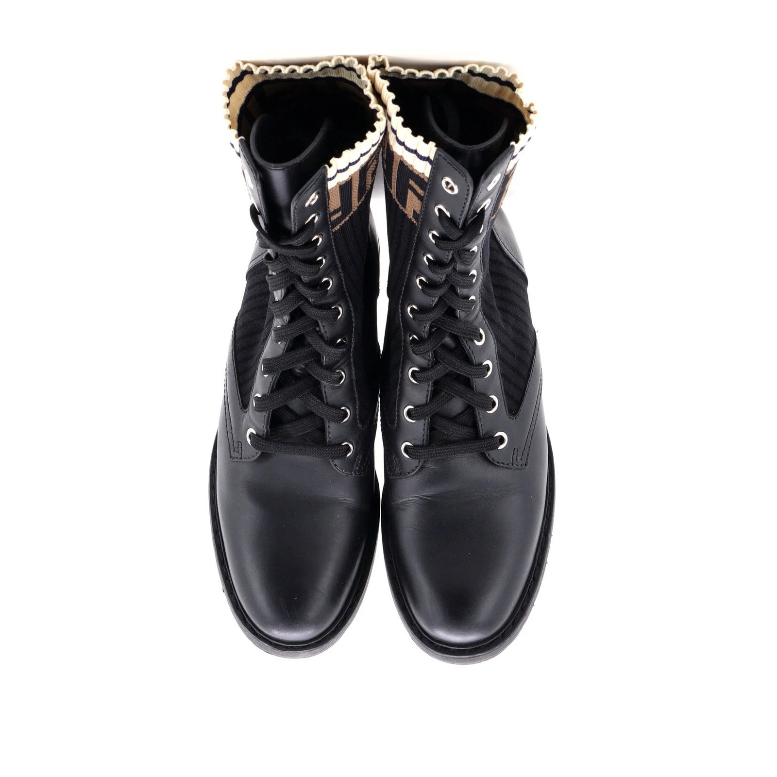Fendi Women'S Rockoko Combat Boots Leather With Knit Stretch Fabric And Zucca