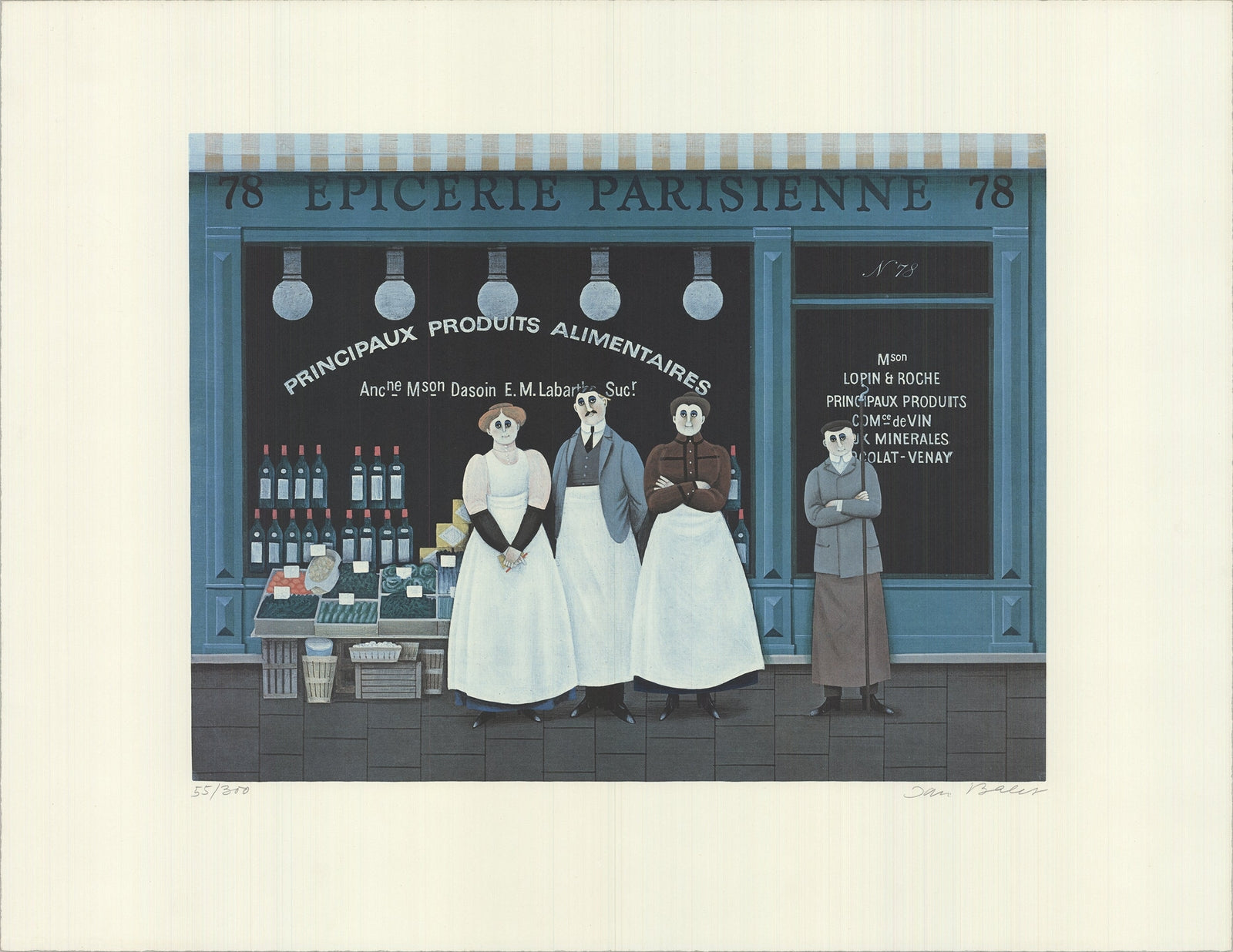 Jan Balet Epicerie Parisienne Signed " Lithograph Folk Art