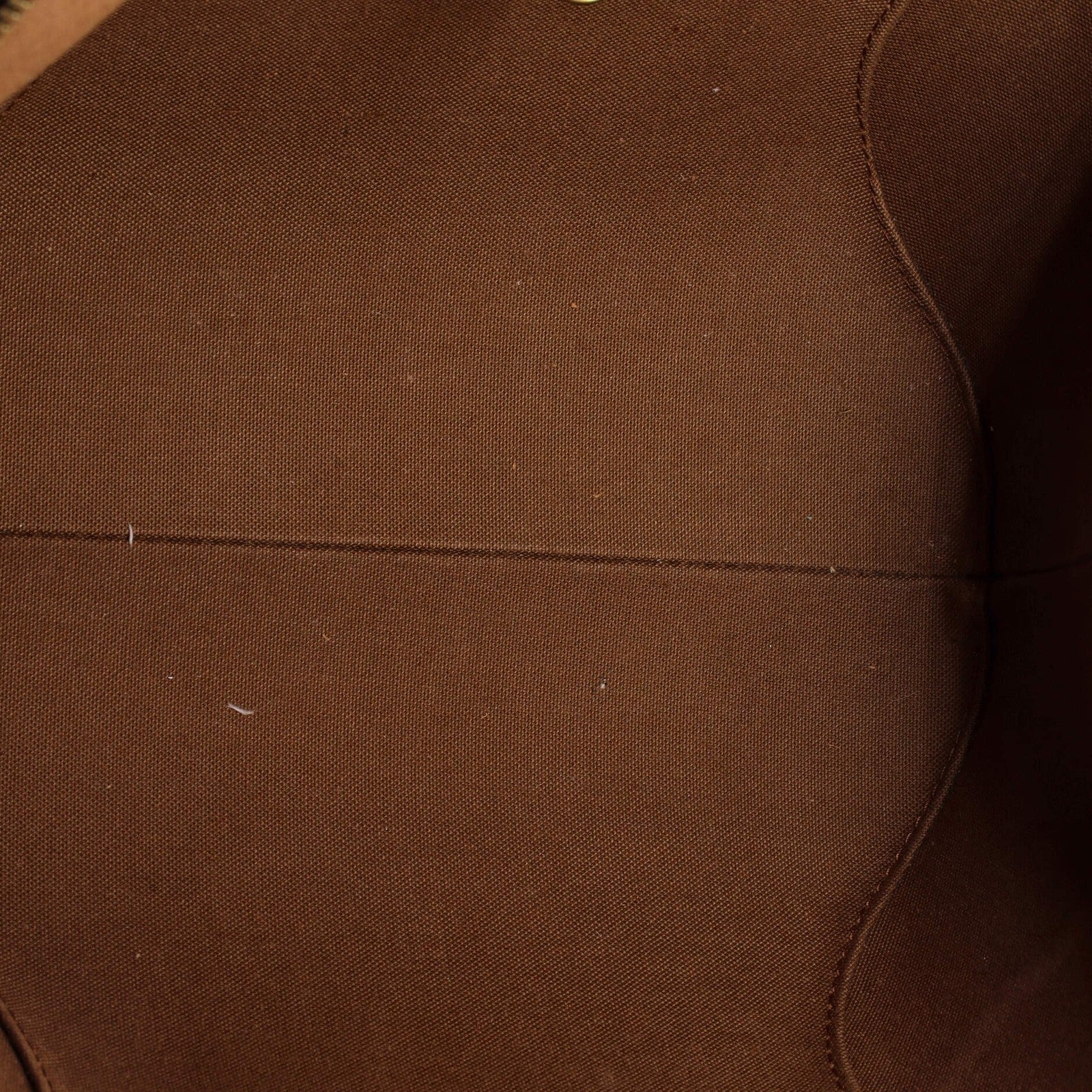 Condition: Fair. Exterior: Leather trims, heavy edge wear, heavy discoloration throughout, scuffs, creases. Handles/Straps: heavy discoloration, scuffs, cracking. Interior: moderate odor, scuffs, discoloration. Hardware: scratches, tarnished