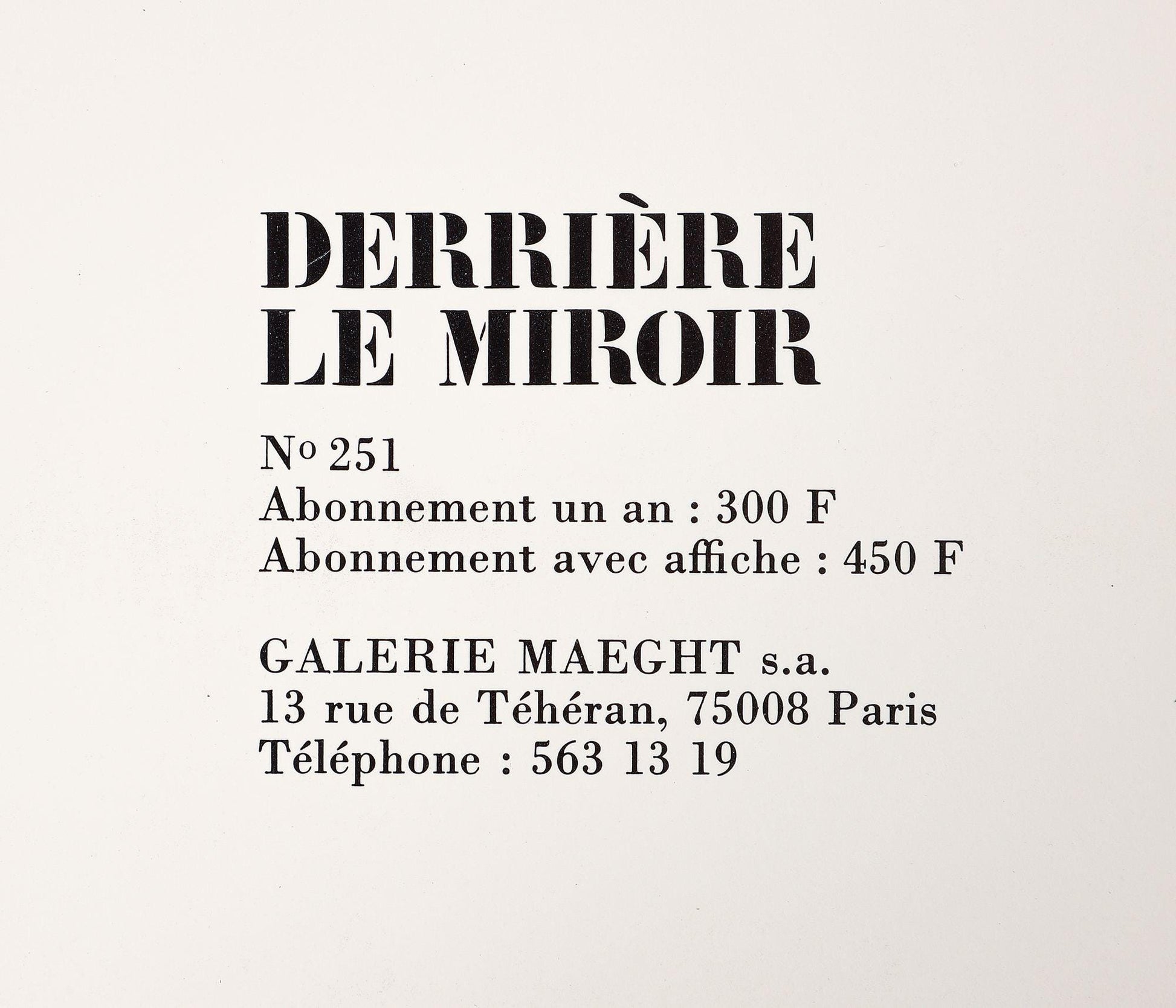 The first three issues of Derrire le Miroir were unsuccessful for Maeght as far as the edition sizethe initial print-runs were far too large.
