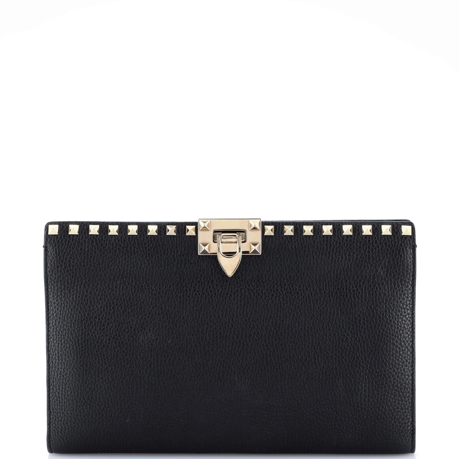 Valentino Garavani Rockstud Flip Lock Flat Pouch Leather Large