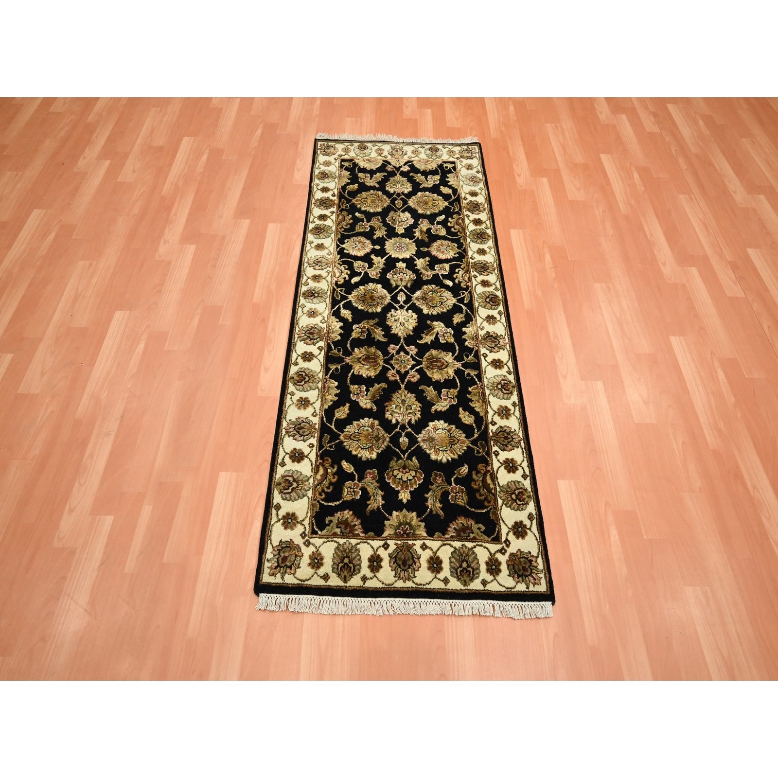 2'7"X6'2" Black Rajasthan Leaf Design Hand Knotted Wool & Silk Runner Rug