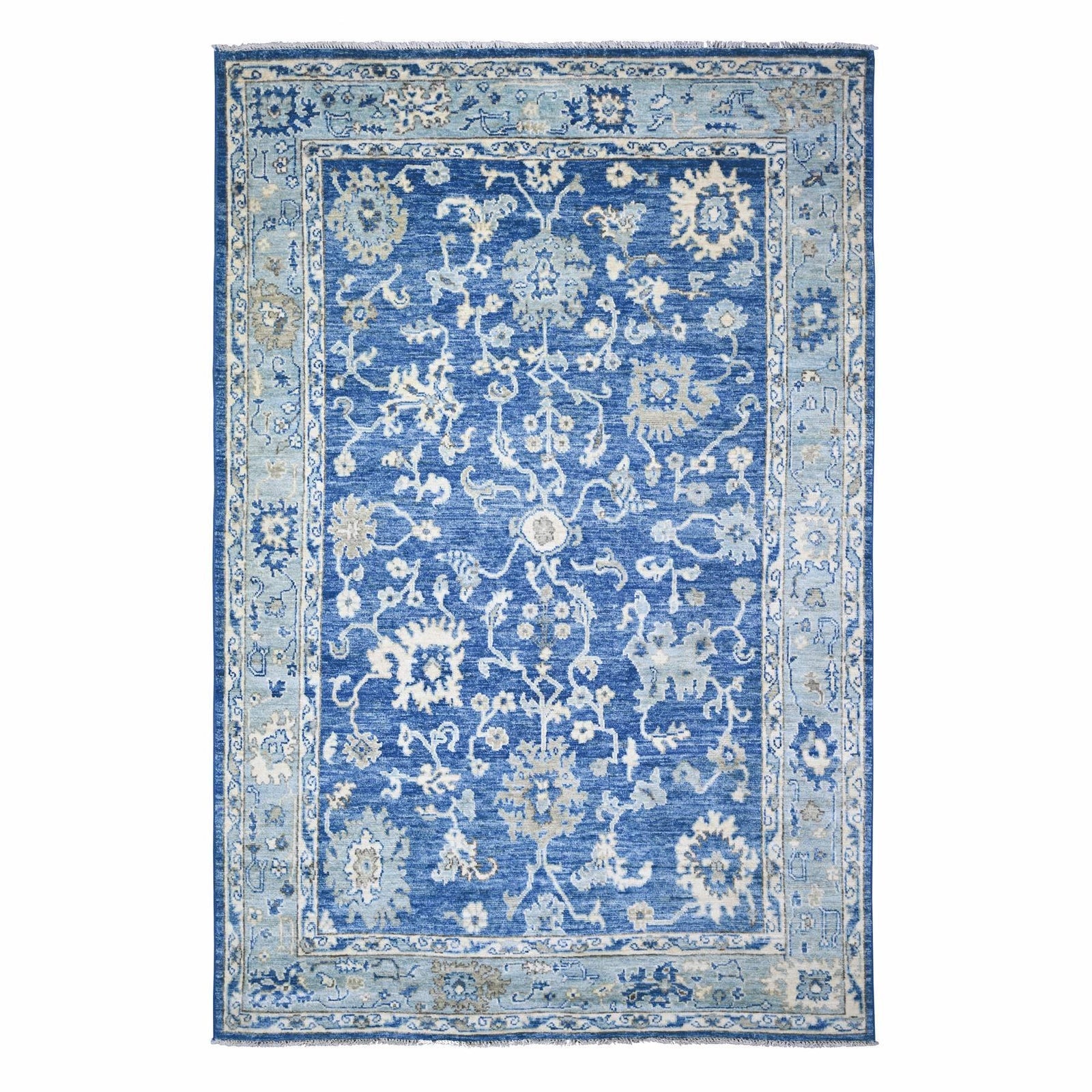 5'8"X9' Steel Blue Hand Knotted Afghan Angora Oushak Soft Wool Rug