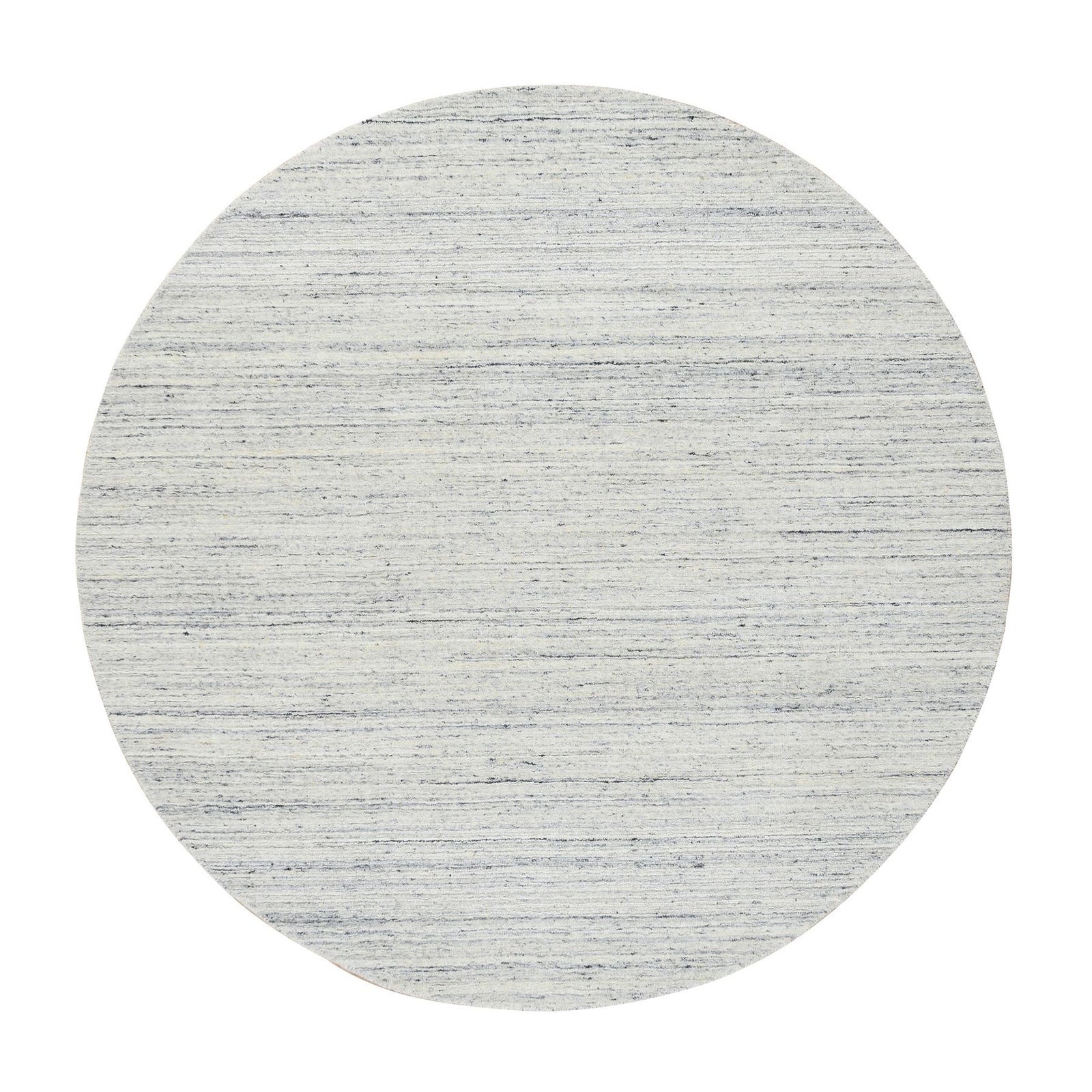 6'X6' Ivory Plain Modern Striae Design Wool Hand Loomed Round Rug