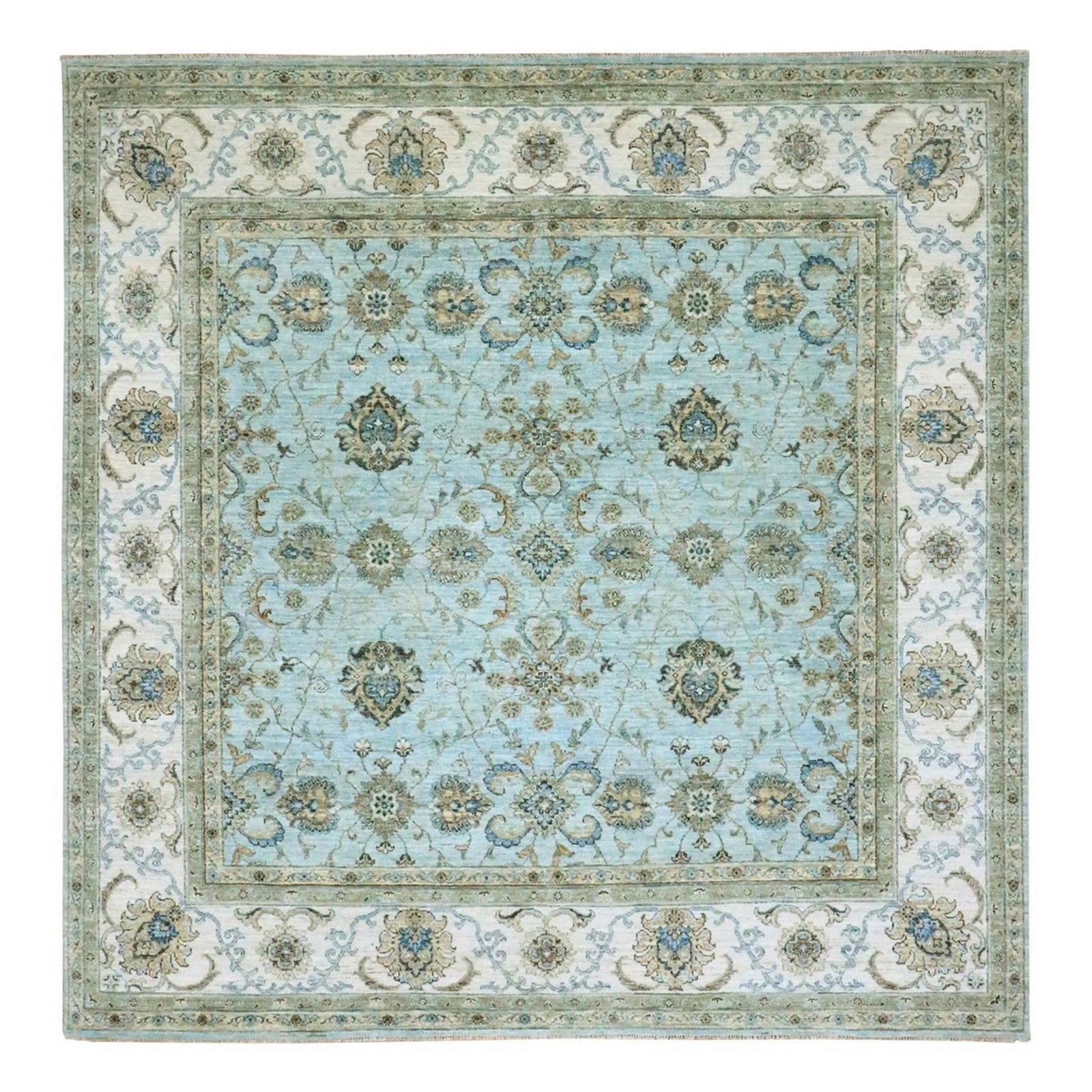 8'1"X8'1" Blue Agra Shah Abbas Flower Design Wool Hand Knotted Square Rug