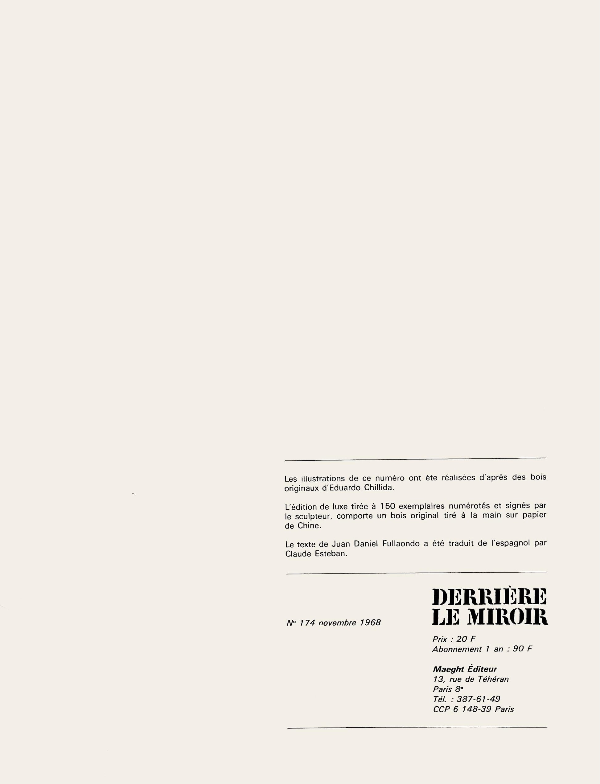 Excerpted from the volume (translated from French), The illustrations of this issue were made from original woodblocks by Eduardo Chillida.