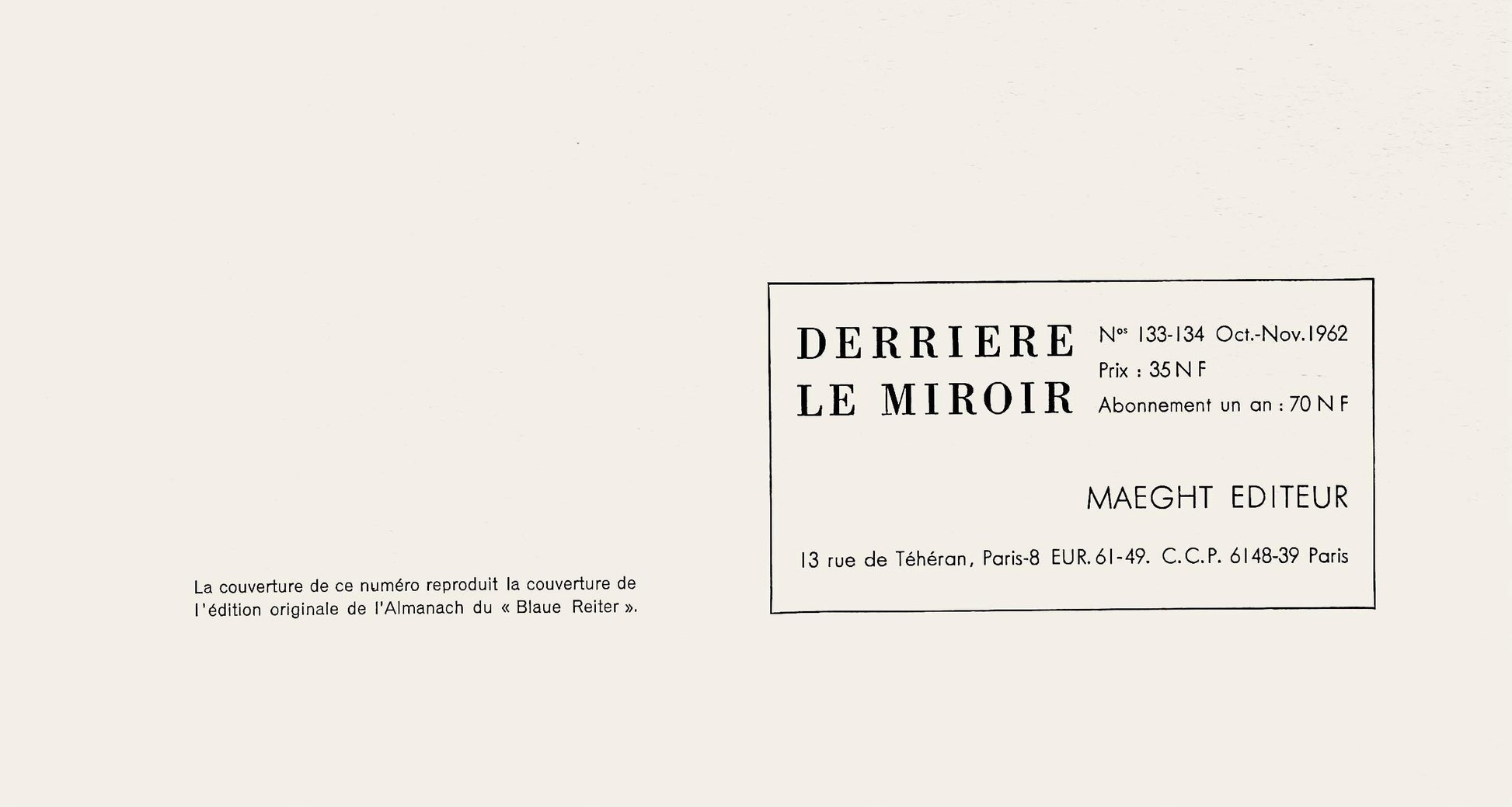 Published by Aim Maeght, diteur, Paris; printed by ditions Pierre Feu, Galerie Maeght, Paris.