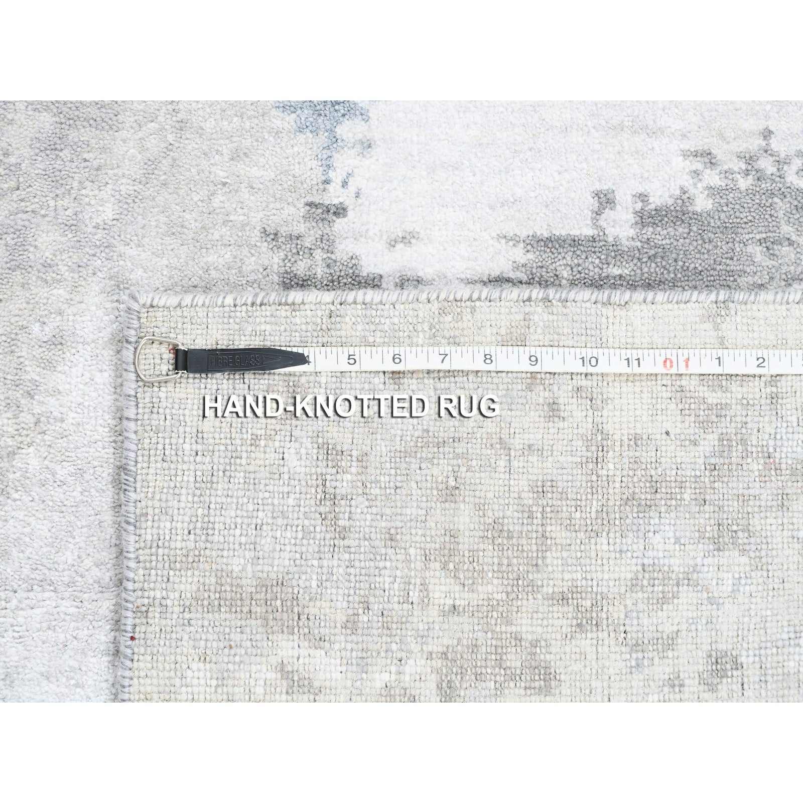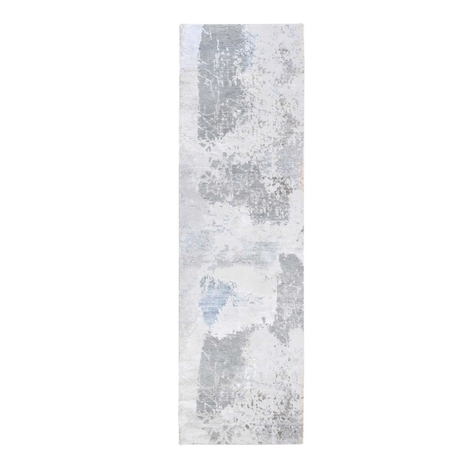 2'9"X10' Gray Modern Wool And Silk Hand Knotted Oriental Runner Rug