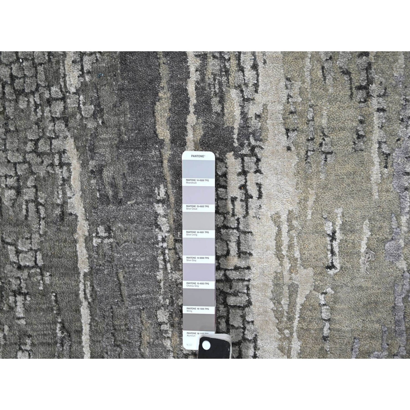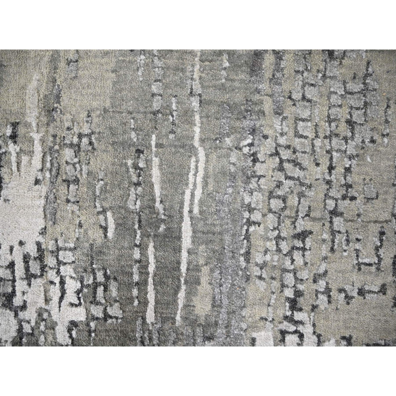 2'9"X19'9" Gray Abstract Design Wool And Silk Hand Knotted Xl Runner Rug