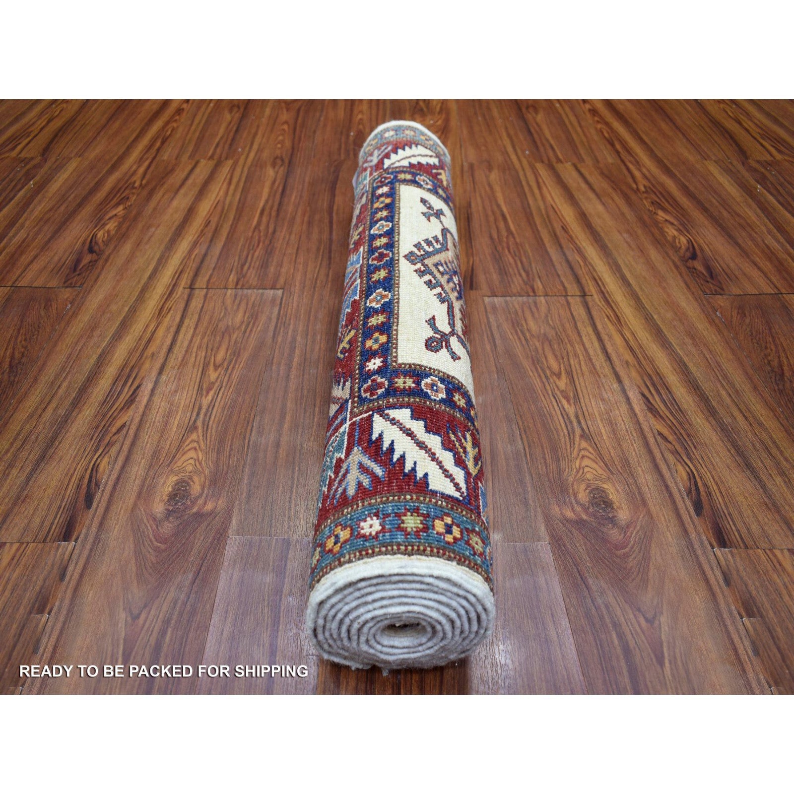 2'9"X8'6" Ivory Soft Wool Hand Knotted Afghan Super Kazak Runner Rug