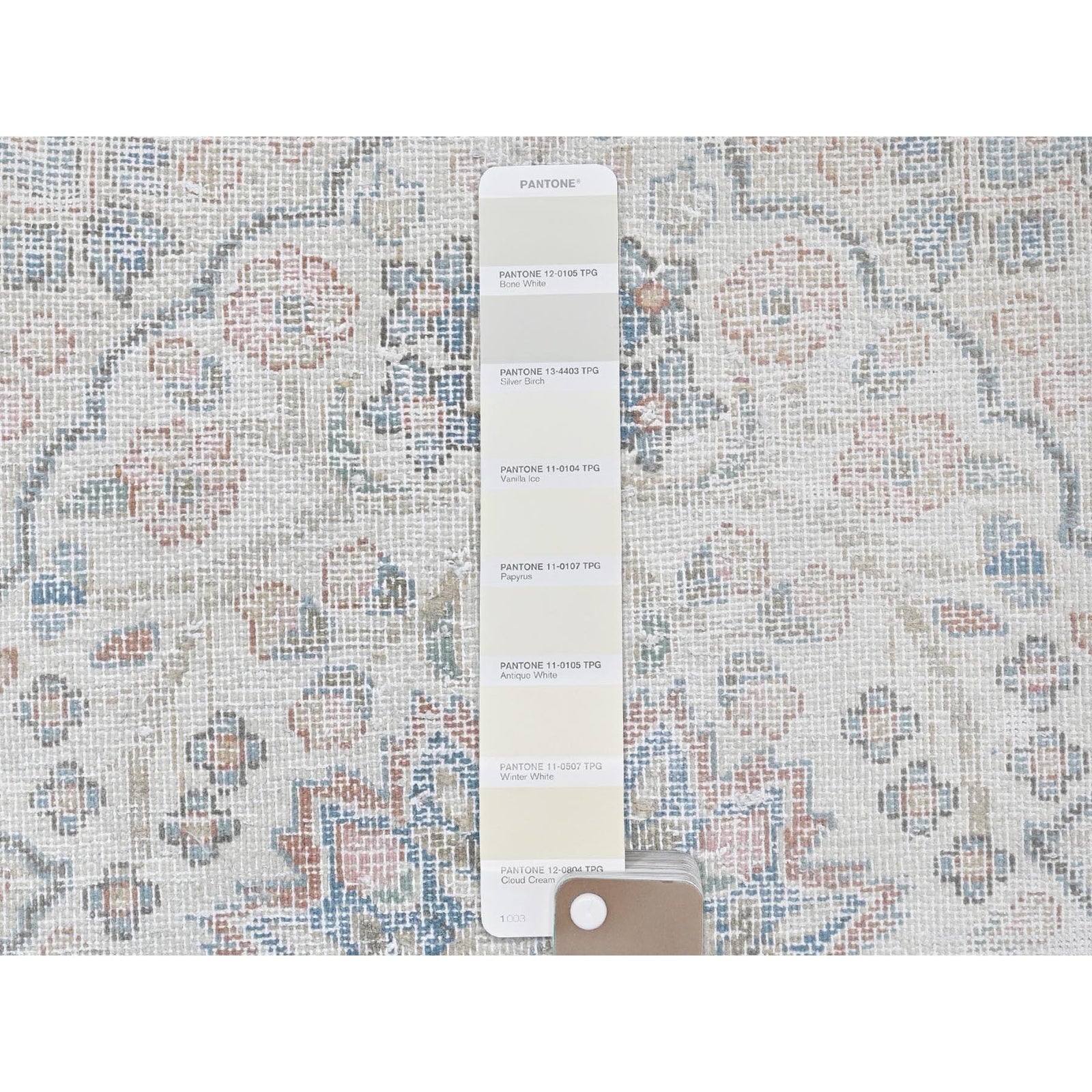 2'X2'9" Ivory Old Farsian Karman Worn Wool Hand Knotted Mat Rug