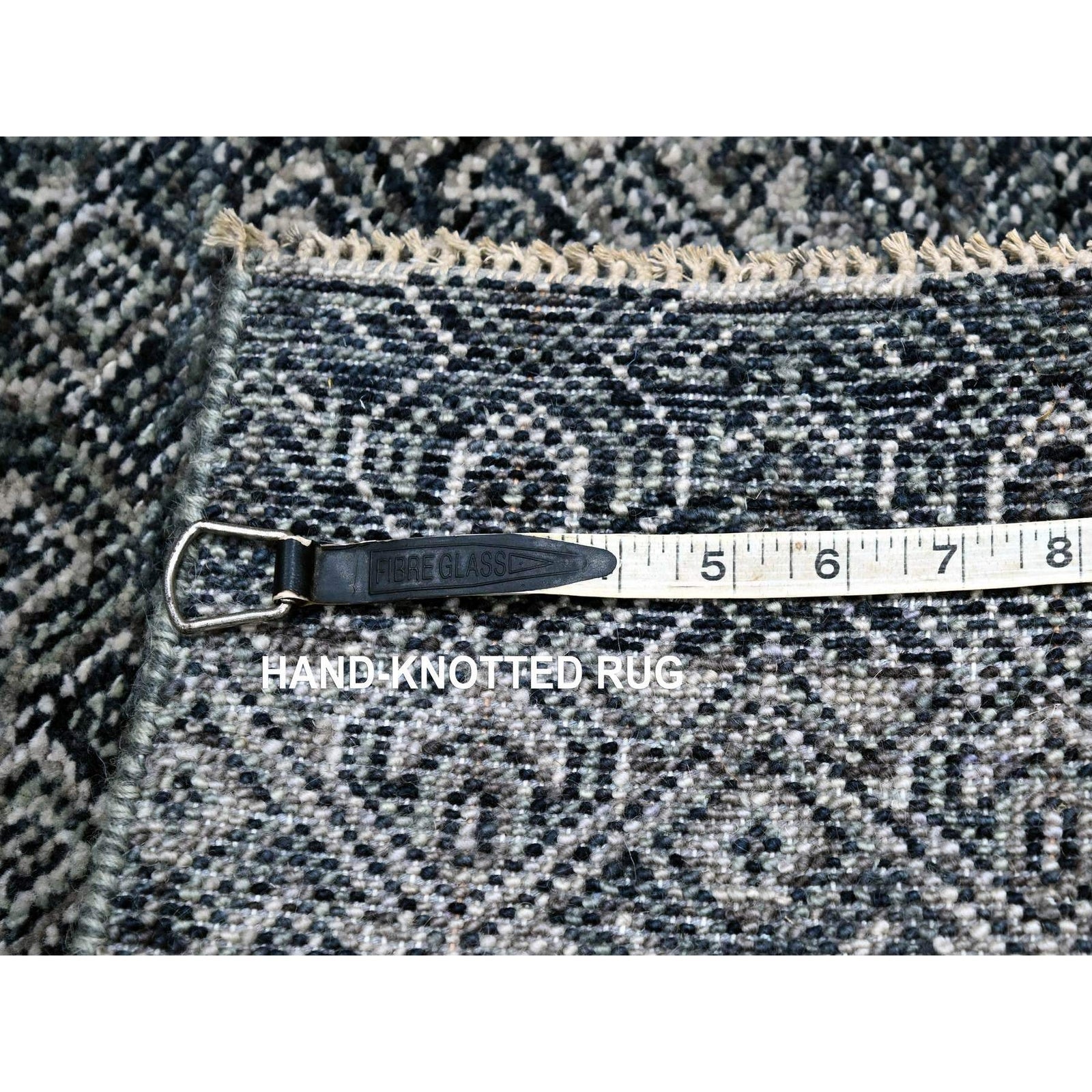 2'X3' Gray Kohinoor With Repetitive Design Hand Knotted Pure Wool Mat Rug