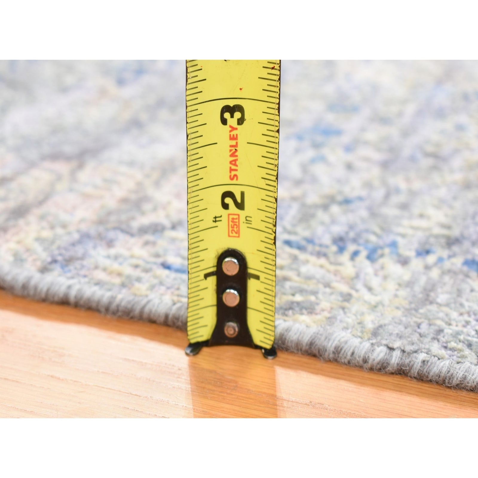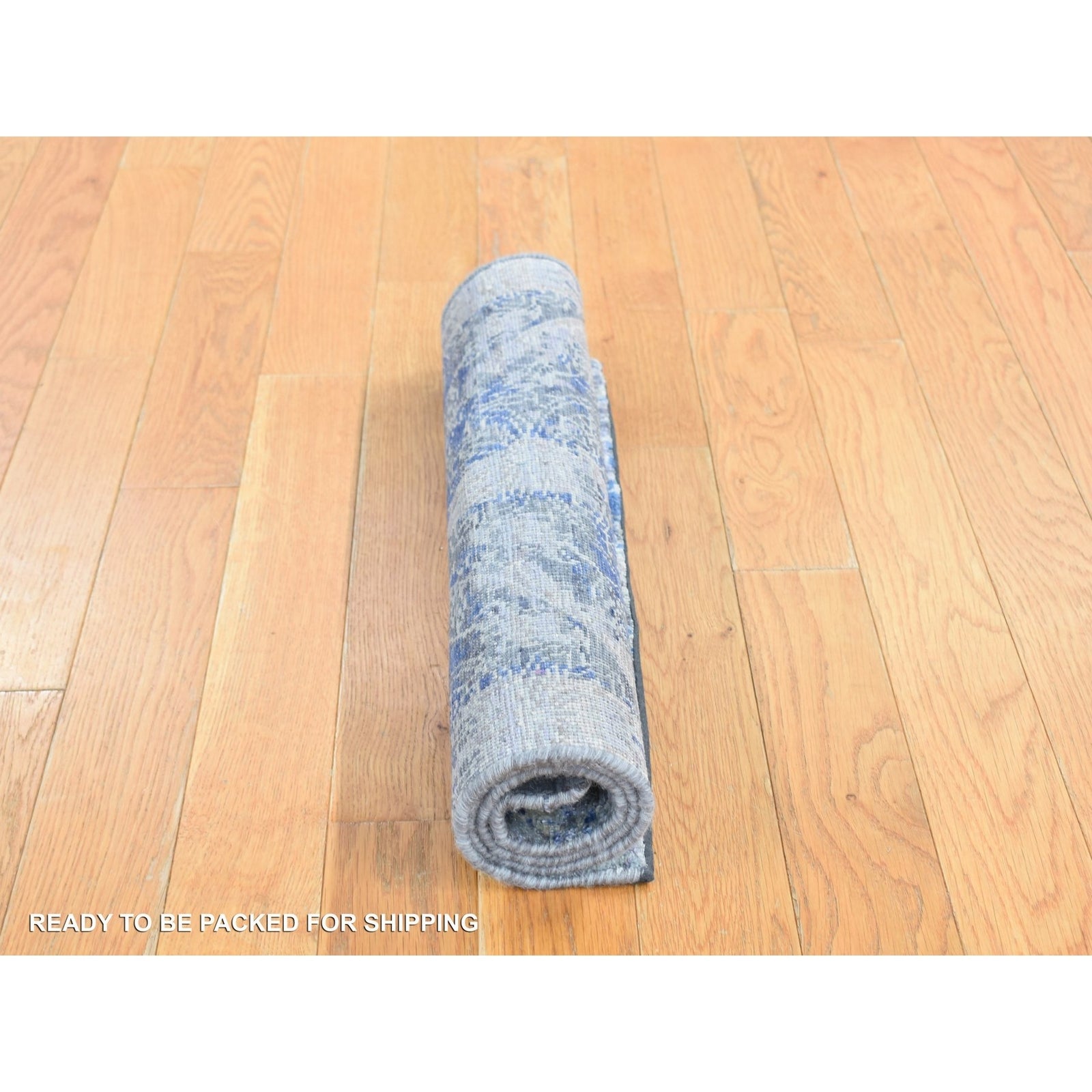 2'X3'1" Blue Erased Rossets Silk With Wool Hand Knotted Sample Rug