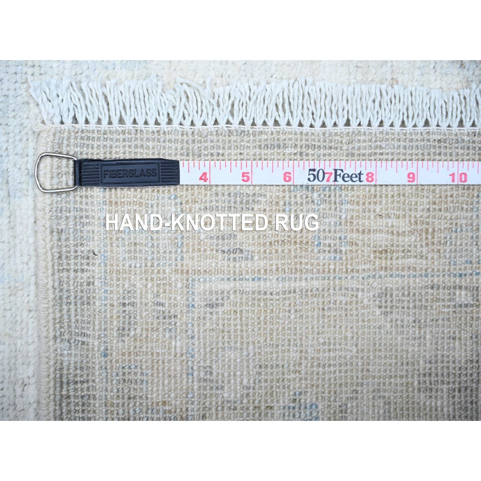 3'1"X12' Blue Gray White Wash Peshawar Shiny Wool Hand Knotted Runner Rug