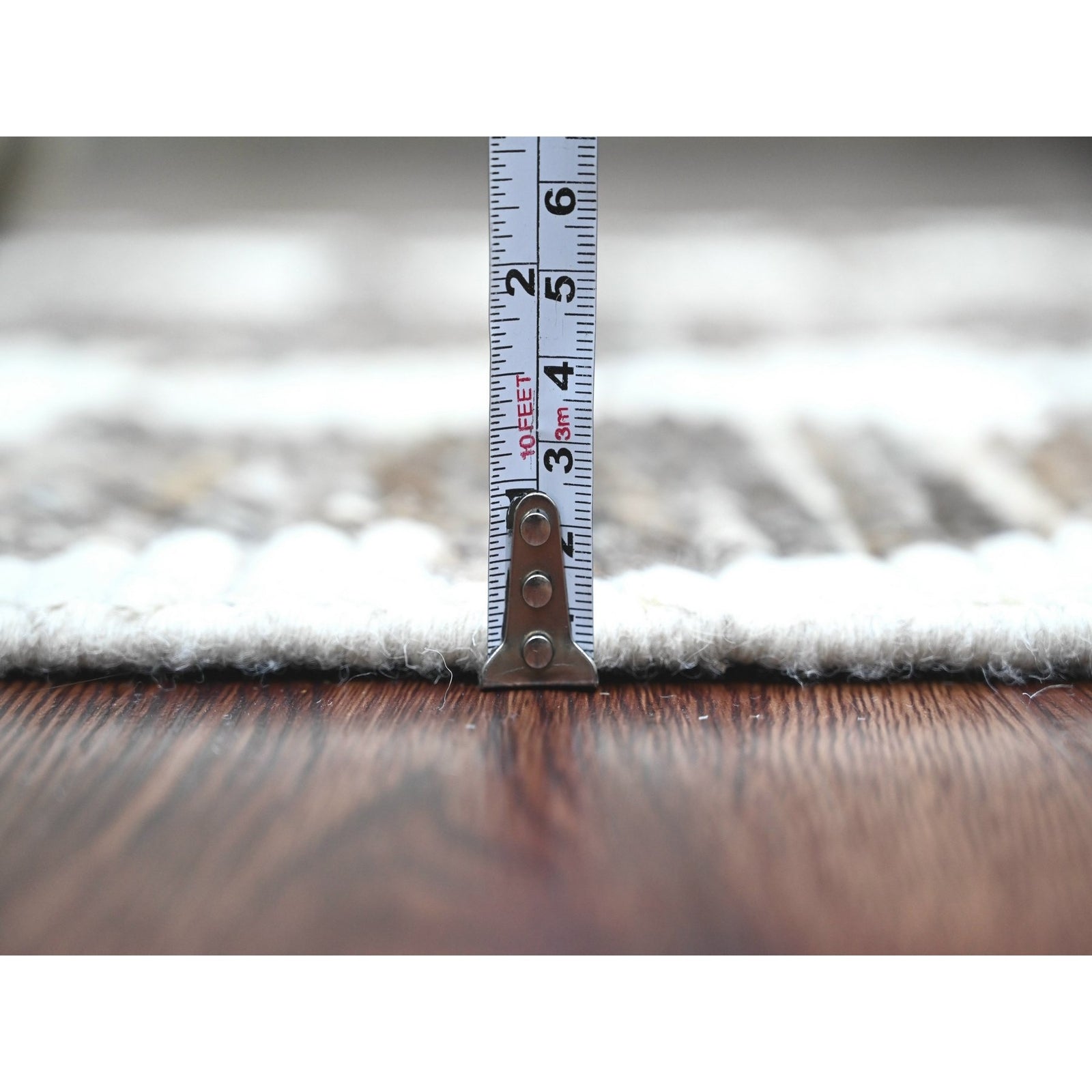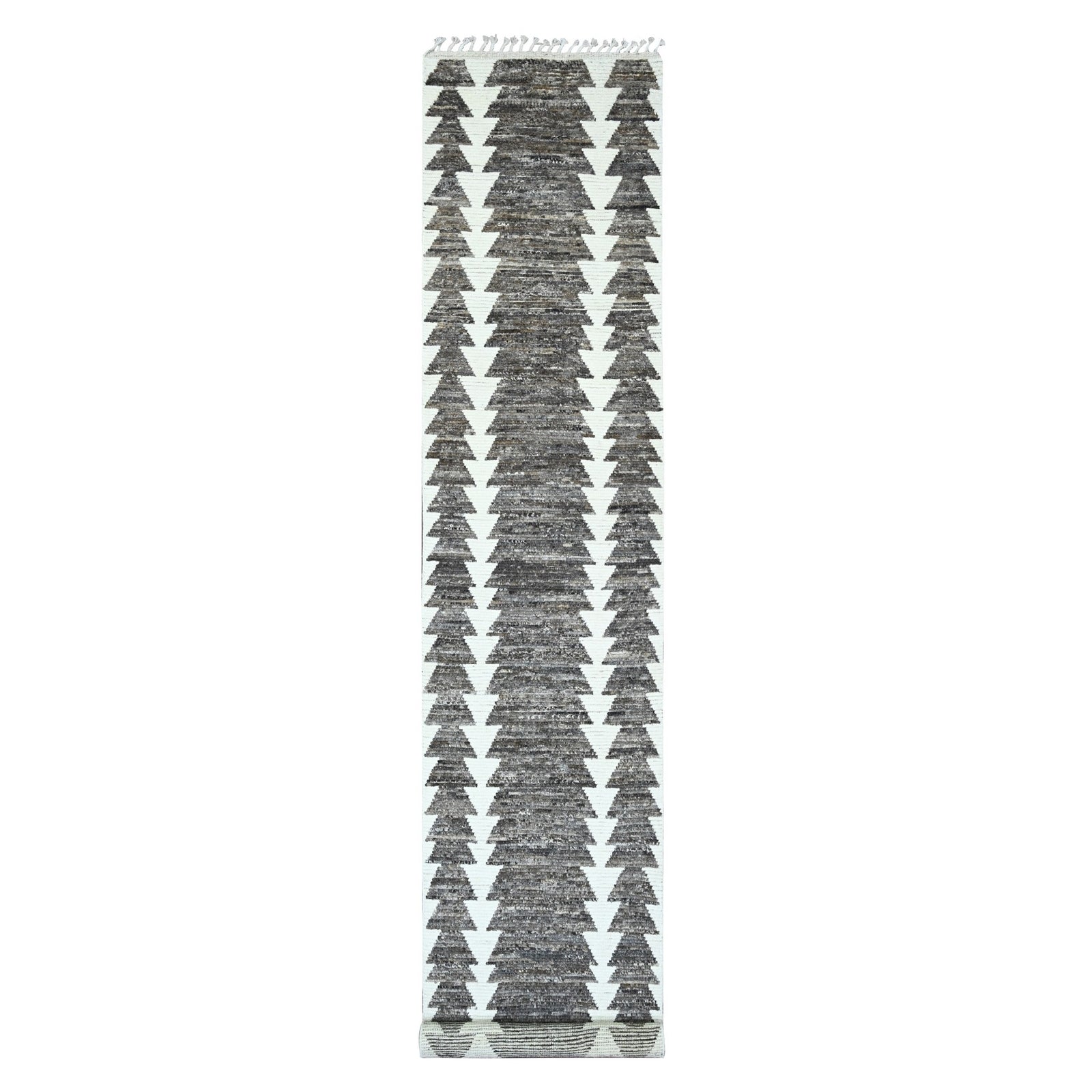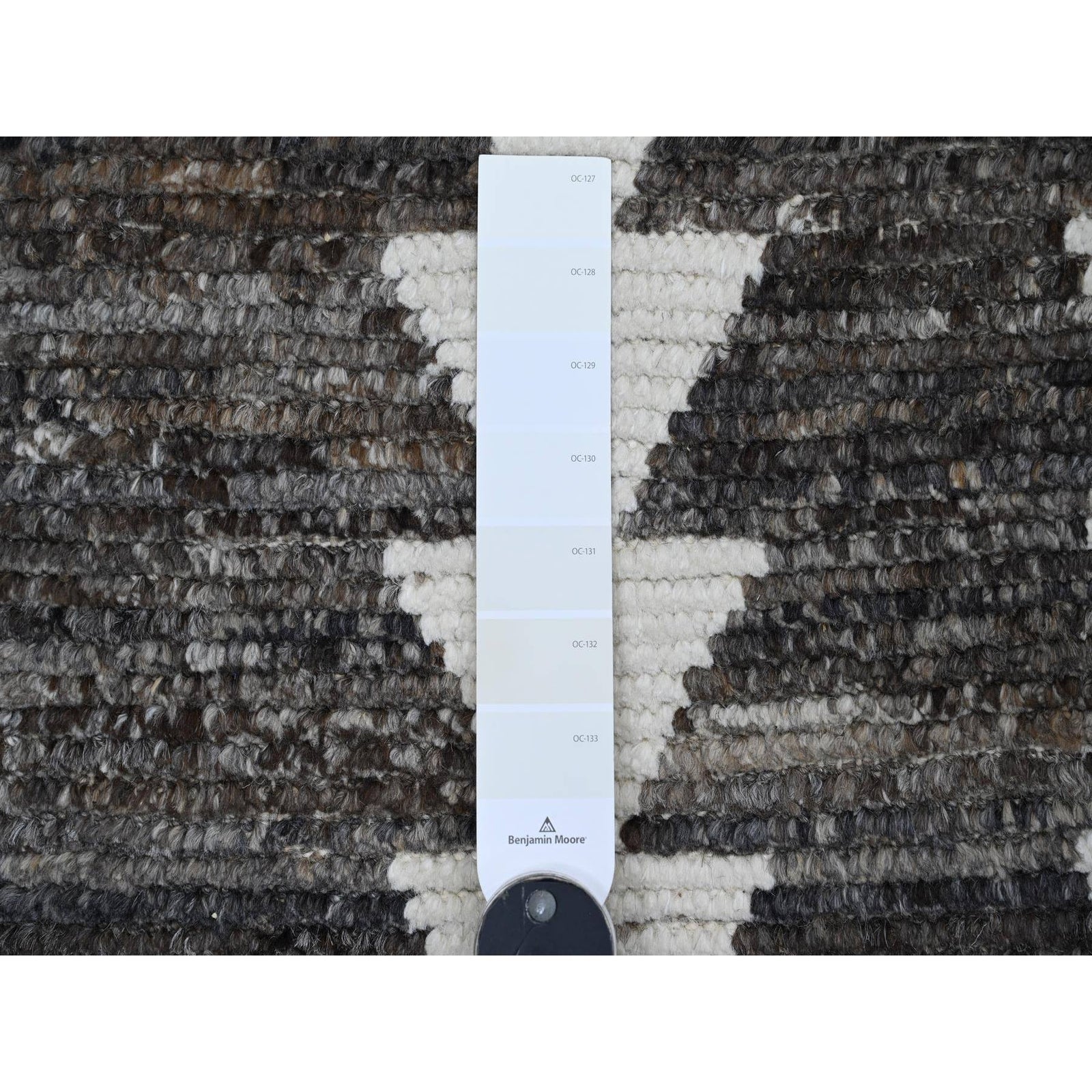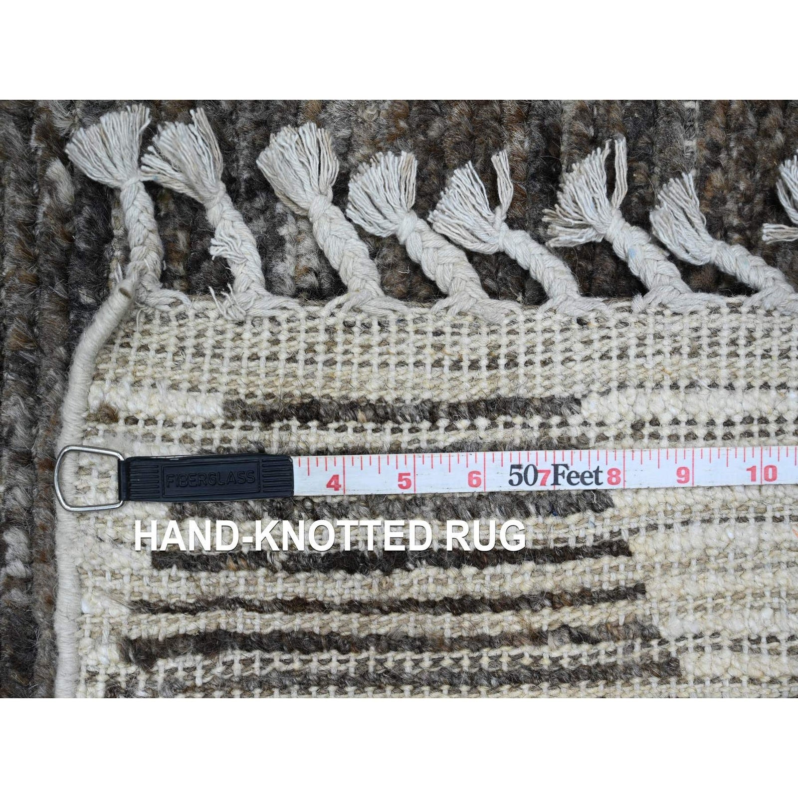 3'1"X16'8" Brown Moroccan Weave Line Design Hand Knotted Wool Runner Rug