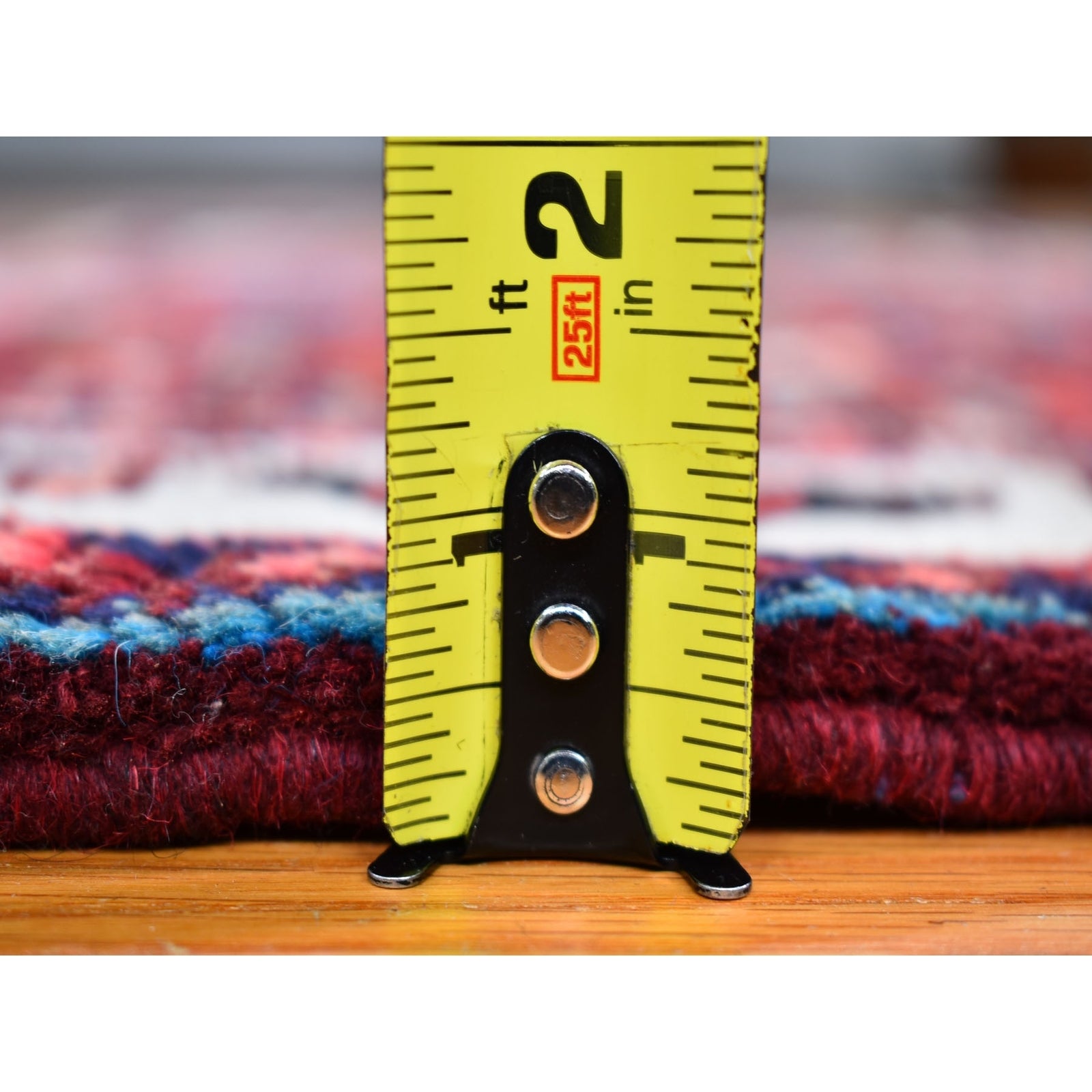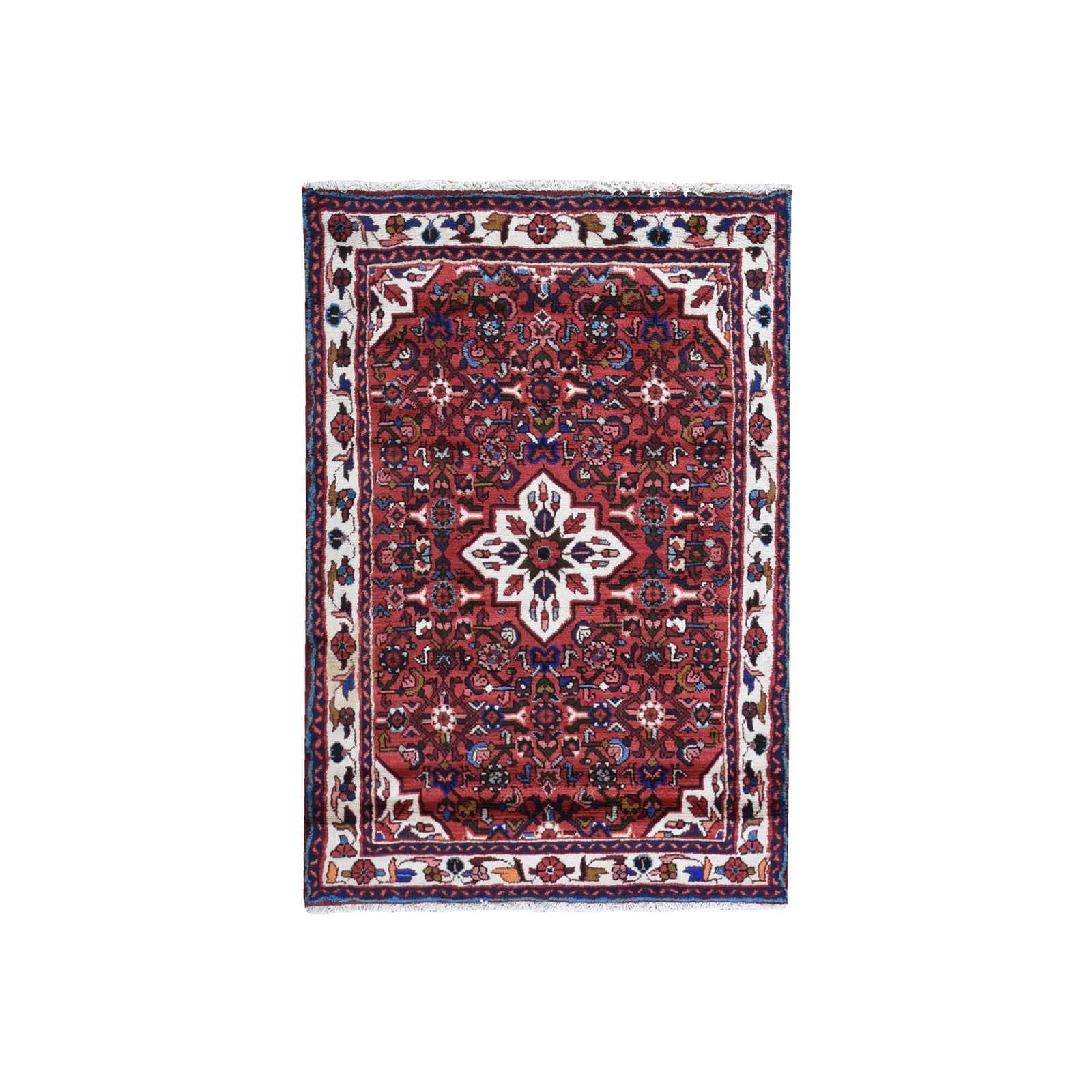 3'6"X5'1" Red New Farsian Amadan Flower Medallion Design Handknotted Rug