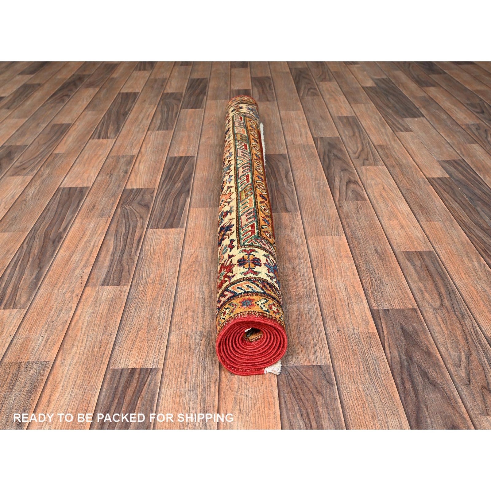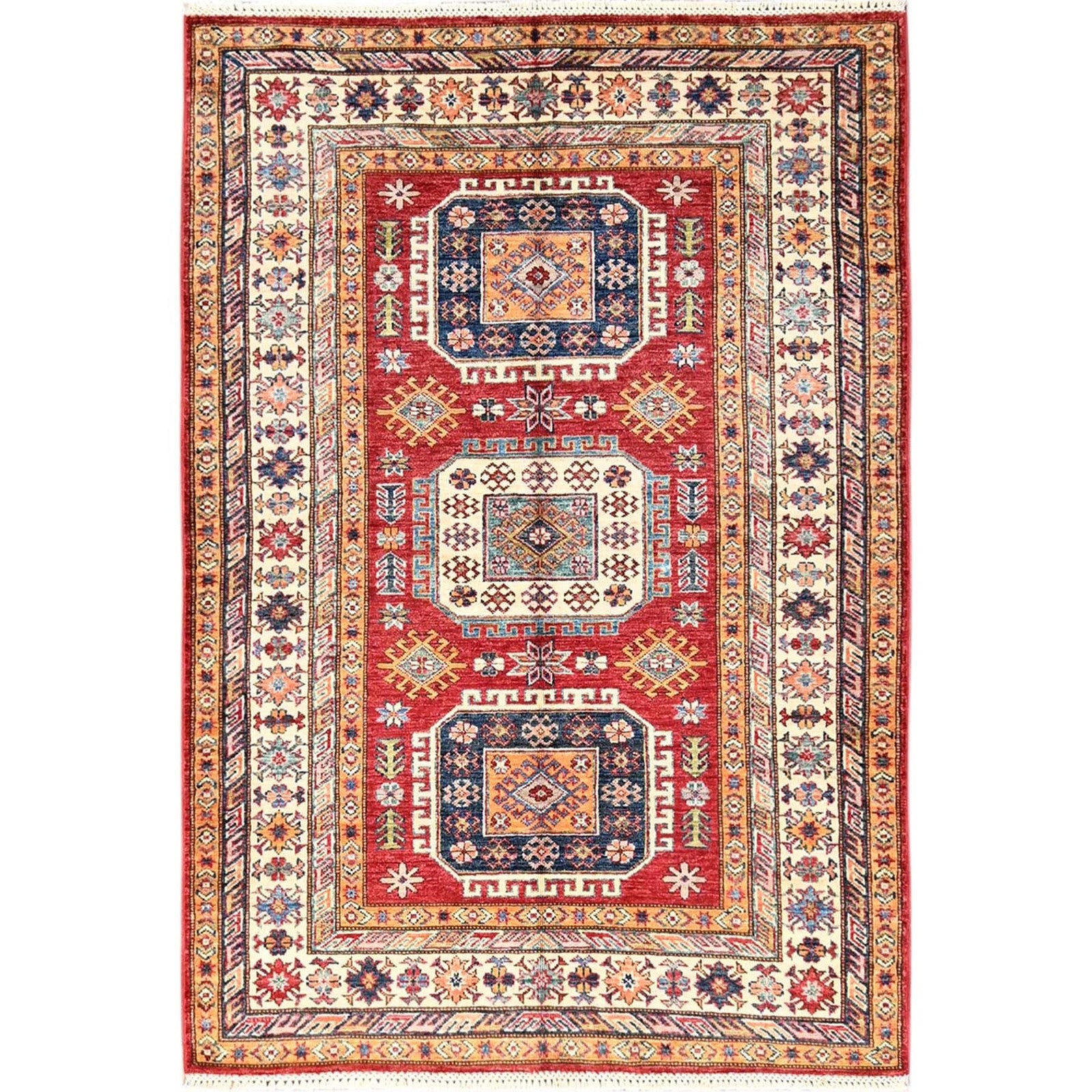 4'2"X6'2" Berry Red Afghan Super Kazak Hand Knotted Pure Wool Oriental Rug