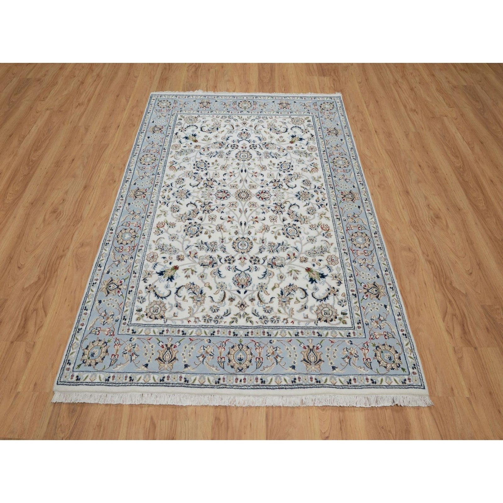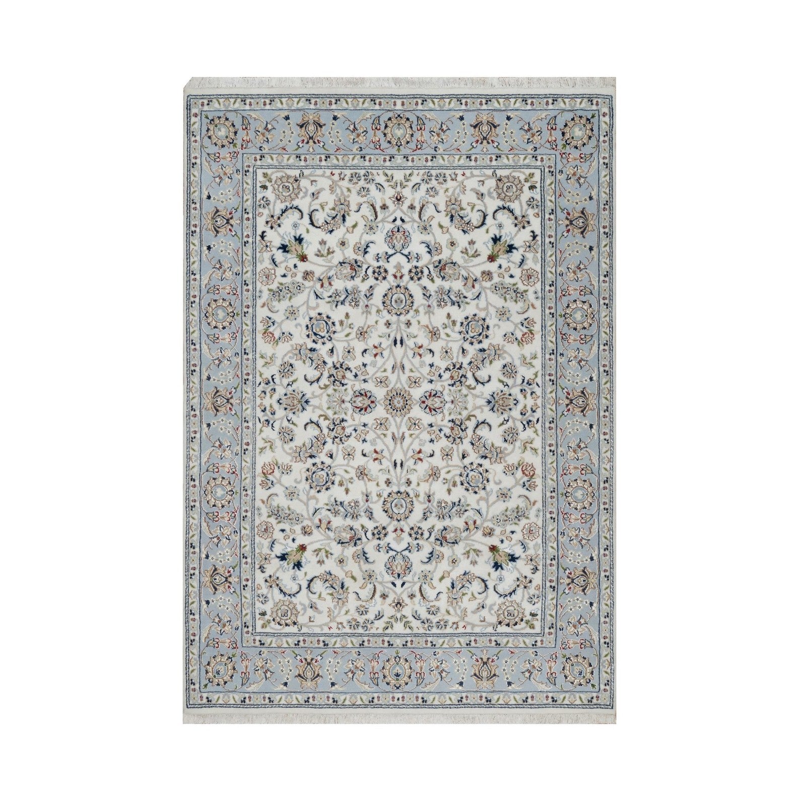 4'9"X6'10" Ivory Nain With Flower Pattern Wool And Silk Hand Knotted Rug