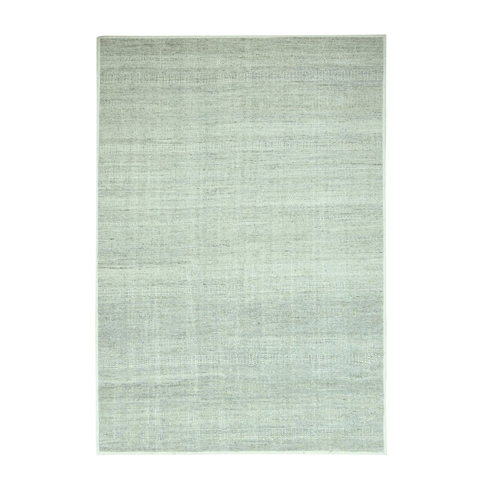 6'1"X9' Gray Natural Wool Rug Hand Knotted Oxidized Grass Design Oriental