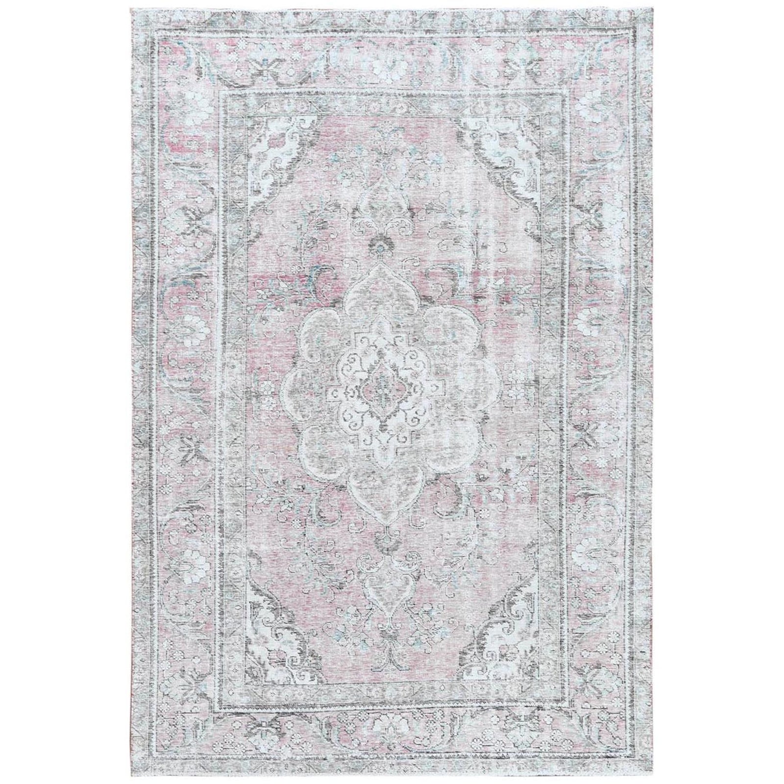6'4"X9'6" Red Natural Wool Bohemian Farsian Tebraz Medallion Design Rug