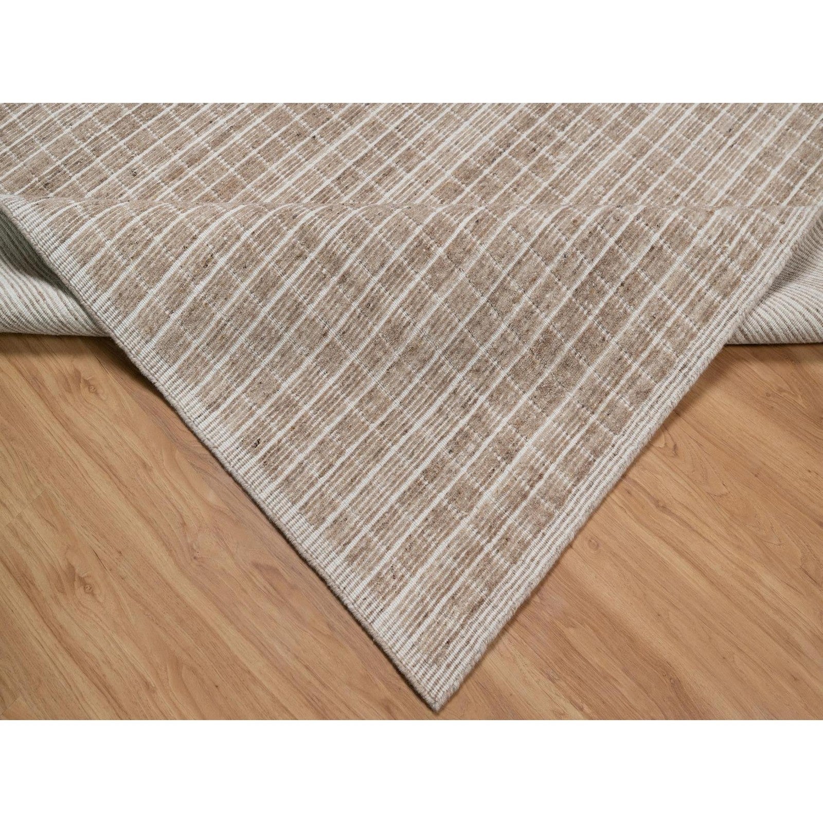 8'1"X10' Sand Brown Loomed Knotted Modern Plain Decor Box Design Wool Rug