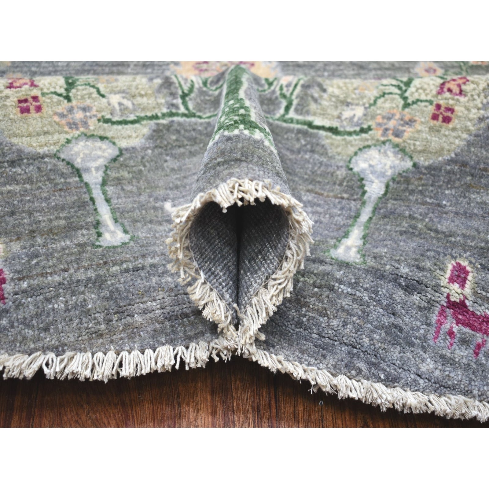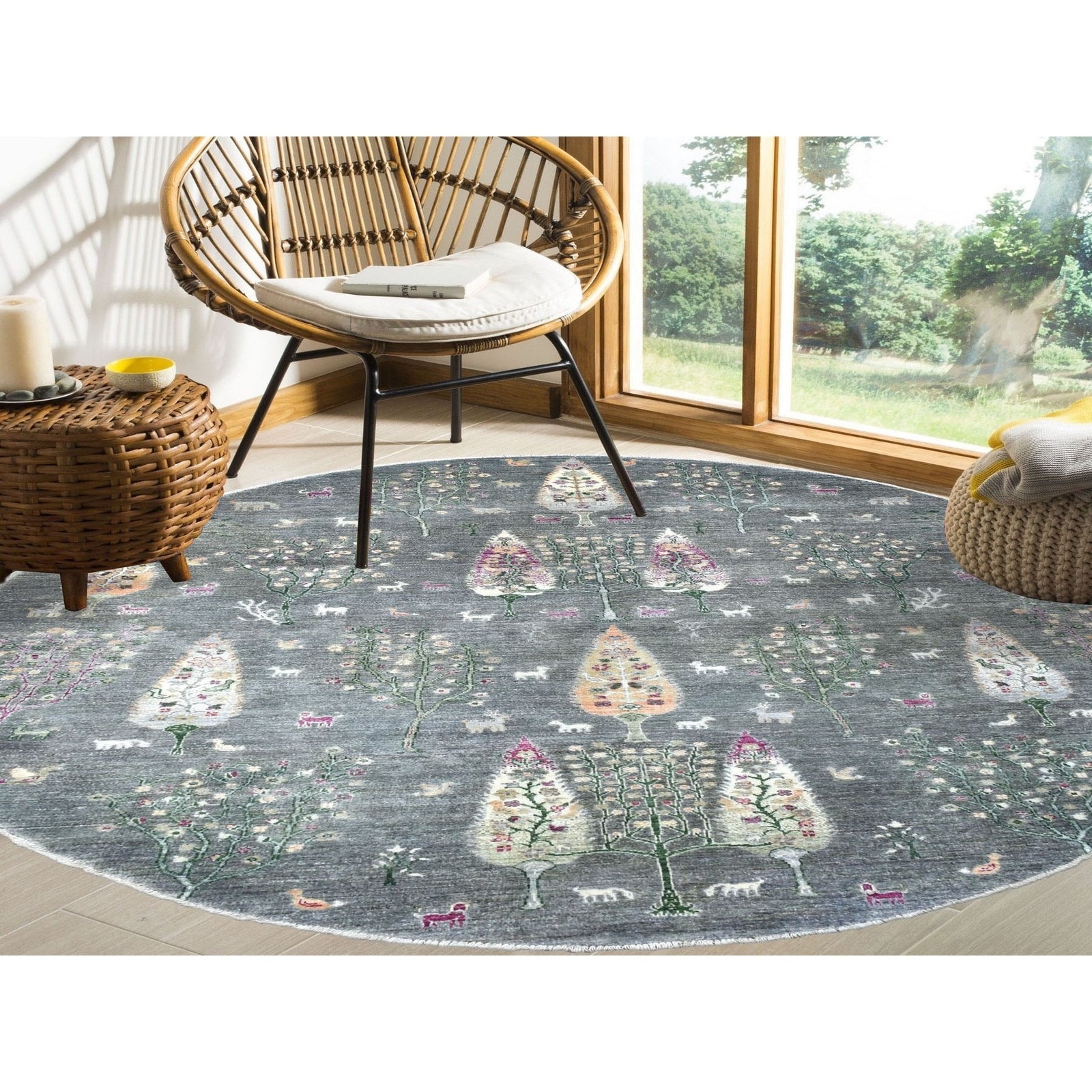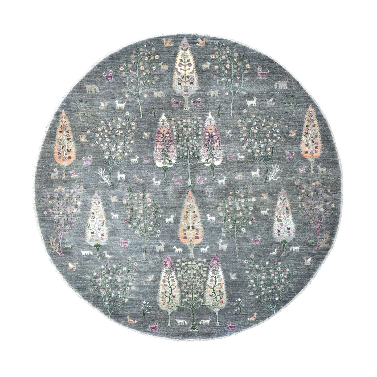 8'2"X8'2" Round Folk Art Willow And Cypress Tree Design Hand Knotted Rug