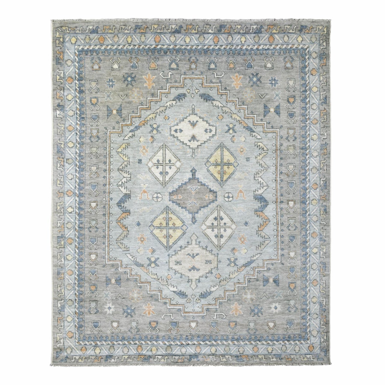 8'X9'10" Gray Anatolian Village Inspired Wool Hand Knotted Rug